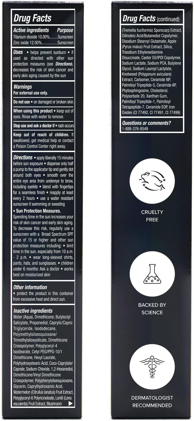 Anti-Aging Powerhouse Ingredients: Our eye corrector for dark circles is powered by anti-aging ingredients including peptides, snow mushroom, and ceramides. It is hydrating and firms the look of fine lines, providing effective puffy eye treatment. It’s also free of parabens, sulfates, gluten, sulfate, cruelty and fragrance.
