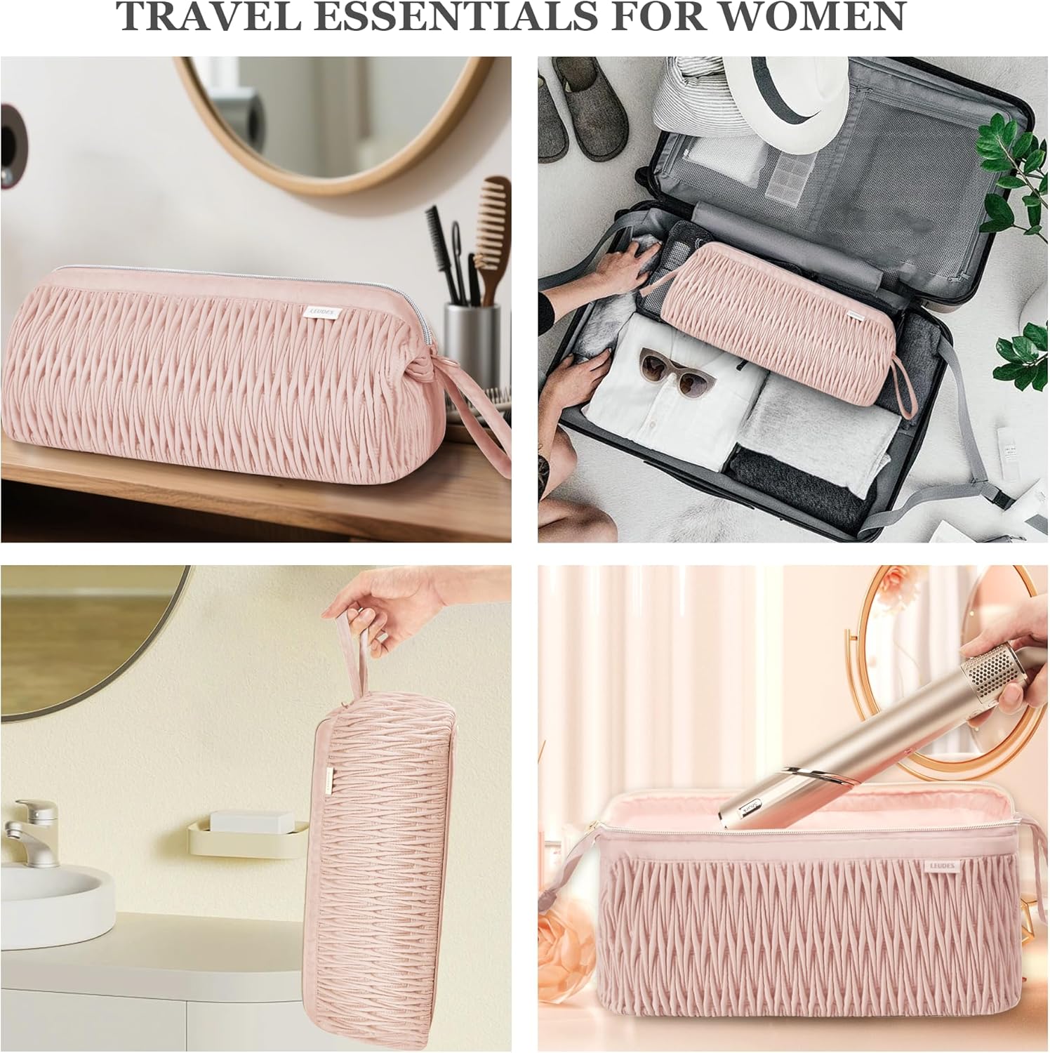 Smart Design:Crafted with a solid, reassuringly firm structure (not flimsy!), the hair tools travel bag is easily manageable with one hand, even at full capacity.The wide, doctor-bag style opening grants quick access to all your tools.A plush, well-padded interior combined with a central divider shields your hair styler, wand, and dryer from impacts, scratches, or any other damage. Includes two transparent zippered pockets to neatly store hair accessories and more