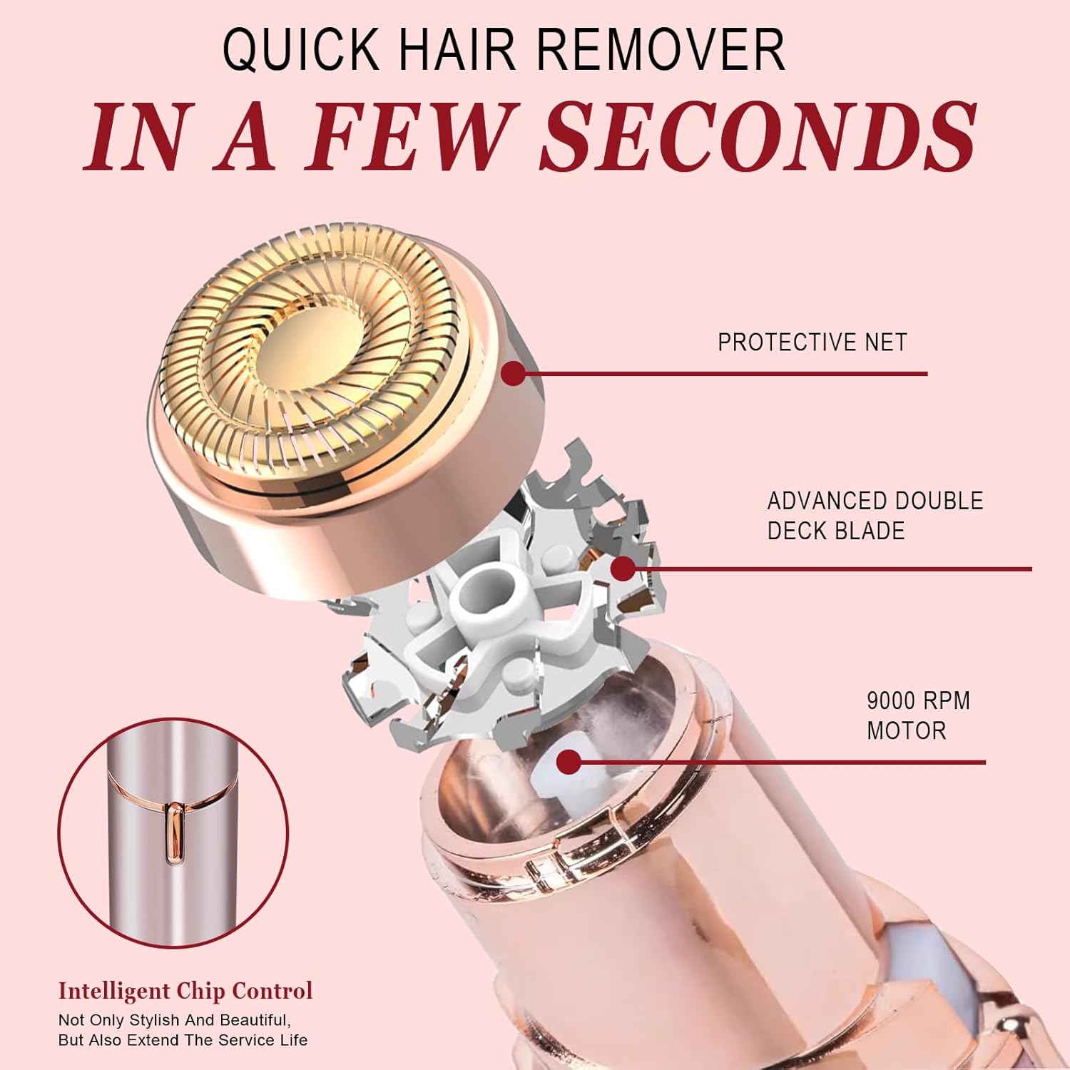 Safe Rose Gold Blades :High-quality 18K gold-plated blades, hypoallergenic for all skin types. Minimizes redness/itching, ensures safe, comfortable use.​