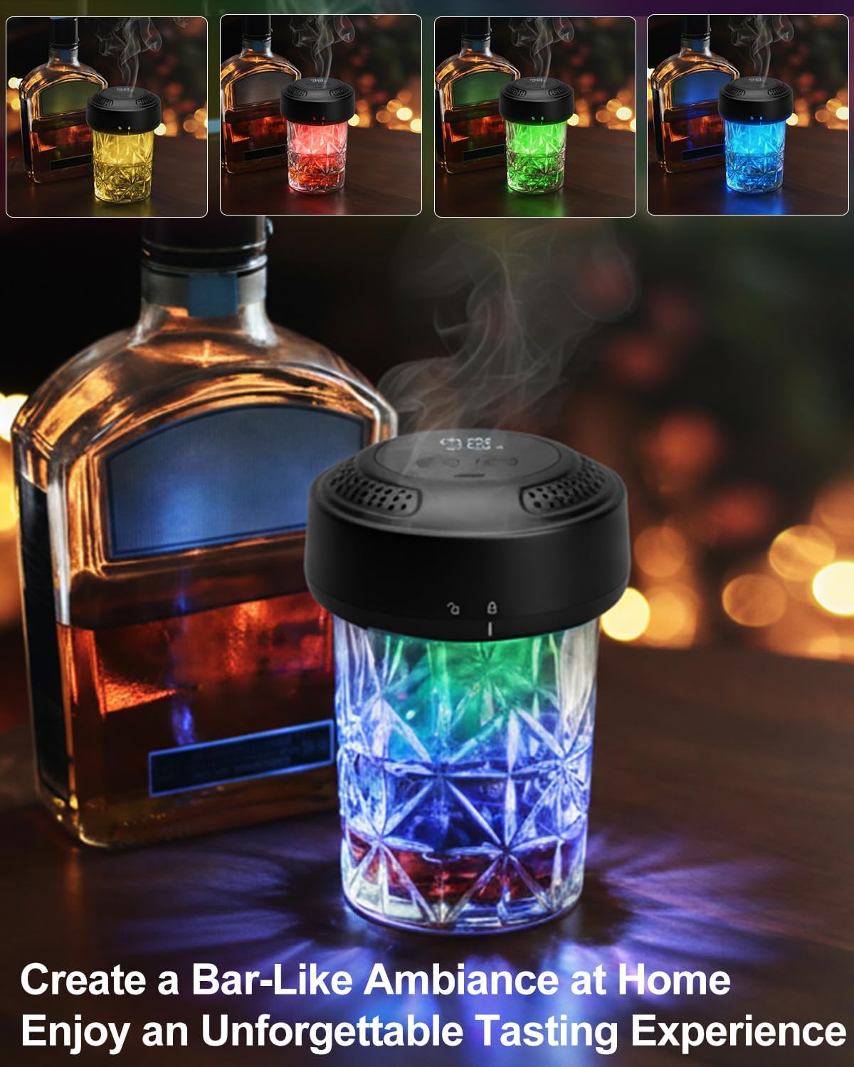 ULTIMATE ENJOYMENT & RELAXATION: The advent calendar cocktail smoker built-in LED lights elevate your whiskey and cocktail experience—creating a glowing, bar-like ambiance at home. Simply press to ignite and watch realistic smoke effects fill the glass, blending visual pleasure with rich, smoky flavor for an unforgettable tasting moment.