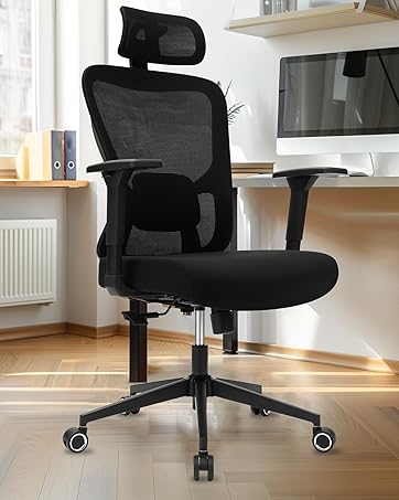 | Ergonomic Office Chair | – Elevate your comfort with our ergonomic office chair, engineered to deliver full-body support for your head, back, hips, and arms. Featuring adjustable lumbar technology, it promotes posture and long-term well-being. Perfect for users’ height between 5’1″ and 6’5″, its customizable design lets you effortlessly adjust the seat height, headrest, backrest, and flip-up armrests – ensuring personalized comfort for hours of seated focus.