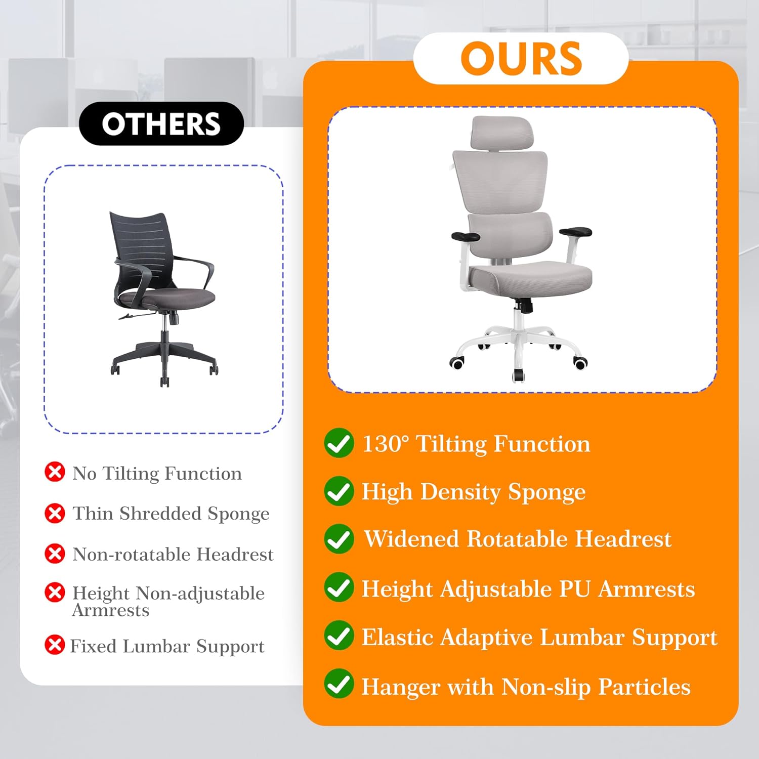 𝗛𝗶𝗴𝗵-𝗕𝗮𝗰𝗸 𝗘𝗿𝗴𝗼𝗻𝗼𝗺𝗶𝗰 𝗢𝗳𝗳𝗶𝗰𝗲 𝗖𝗵𝗮𝗶𝗿:Designed with professional ergonomic support, ALLGOD office chairs provide excellent protection for your body during long hours of sitting. This high-back desk chair features a divided backrest that helps relieve lower back pressure. Its flexible adaptive lumbar support prevents lower back gaps, muscle fatigue, and spinal strain. The cushion is built on a strong FSC-certified wood frame for enhanced durability.