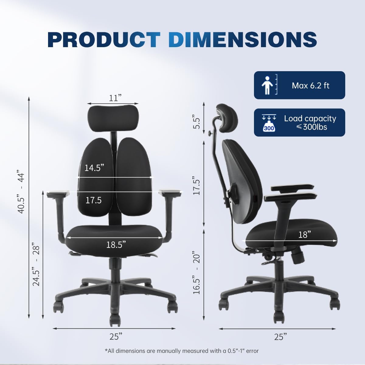 Experience superior lumbar support with our high back office chair, featuring a double backrest design for all-round protection. The ergonomic office chair lumbar support ensures comfort during long work sessions, making it the most comfortable office chair for sitting all day.