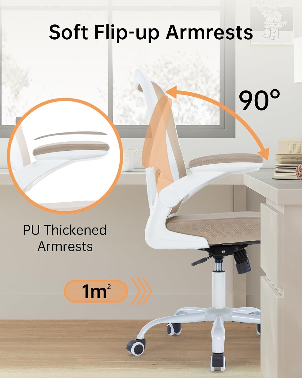 【Multi-Dimensional Adjustability​】This comfy office chair boasts a 360° smooth-rotation base and height adjustment ranging from 18.11 to 20.87 inches. Whether you need an upright position for focused tasks or effortless rotation for team discussions, this lumbar support office chair adapts seamlessly to various office scenarios with intuitive controls.