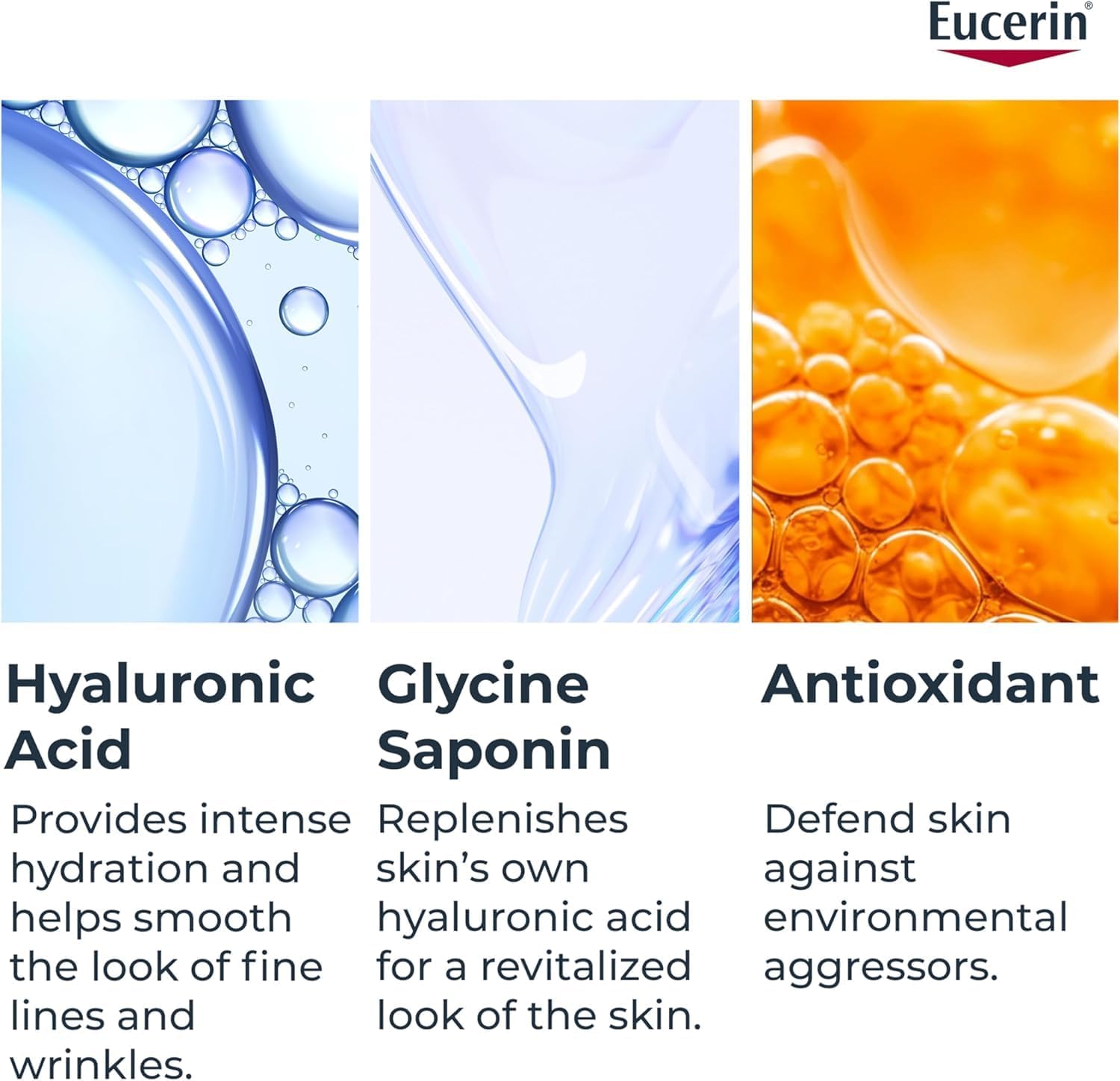 Reveal visibly firmer, smoother and younger-looking skin with Eucerin Anti Wrinkle Firming Day Care facial cream. Its three-effects formula that helps restore hydration and visibly reduces the appearance of fine lines and wrinkles. As we age, the skin’s natural ability to produce hyaluronic acid decreases, causing fine lines and wrinkles to form. Formulated with high and low molecular hyaluronic acid, this facial moisturizer enhances moisture retention, while penetrating to re-plump the look of wrinkles and ensure longer-lasting hydration. This facial firming cream also replenishes skin’s own hyaluronic acid for a revitalized look and defends the skin against environmental stressors. Suitable for all skin types, this face moisturizer for women is non-comedogenic and dermatologically tested. The day cream absorbs quickly, delivering a blast of hydration without feeling heavy on the skin. Apply this anti aging face cream to a well-cleansed face, neck and décolleté as a part of your morning face care routine. For the best results, pair this facial cream with other Hyaluron-Filler skin care products, like Epicelline Serum, Regenerating Night Care and Smoothing Eye Care.
