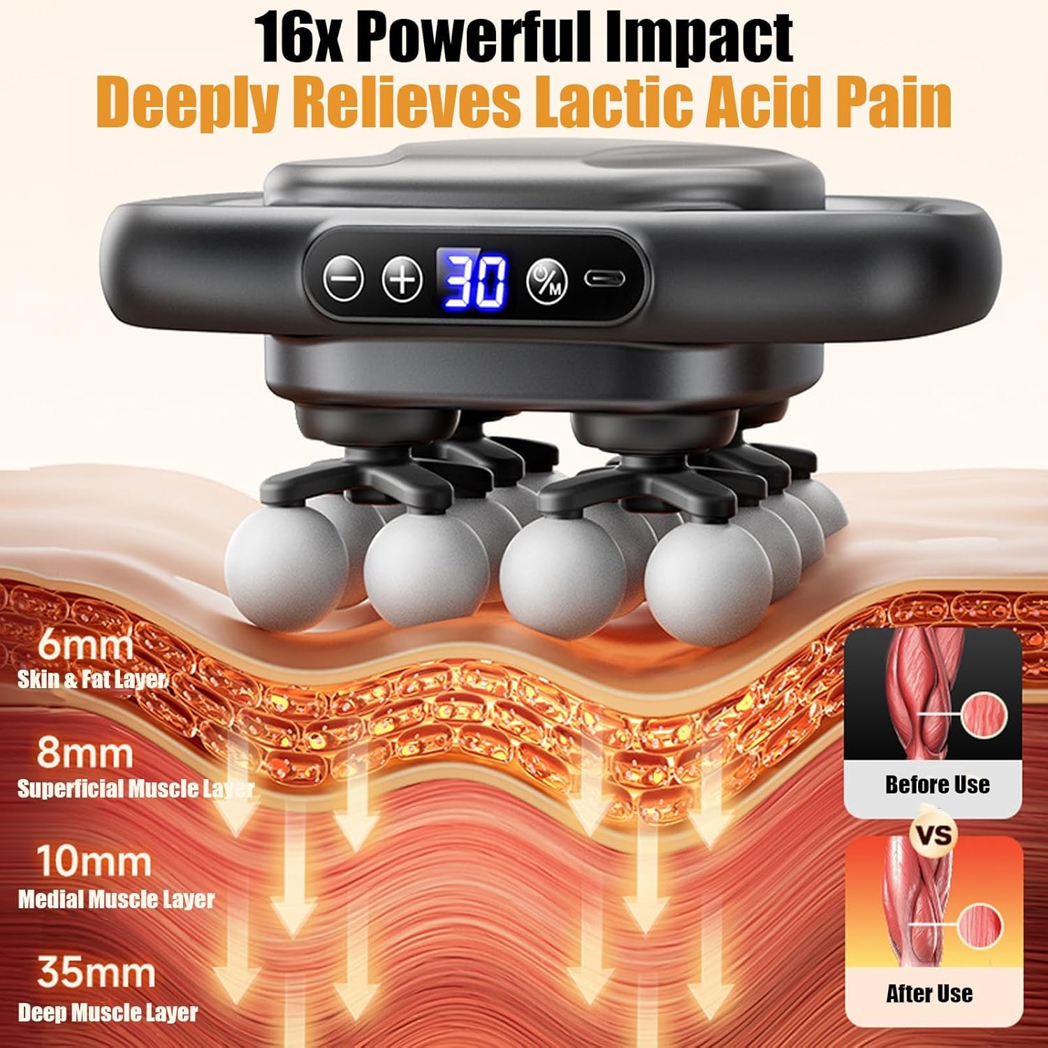 Adjustable Massage Experience: Equipped with 16 rotating nodes and multiple intensity settings, allowing users to customize the pressure level to their personal preference.