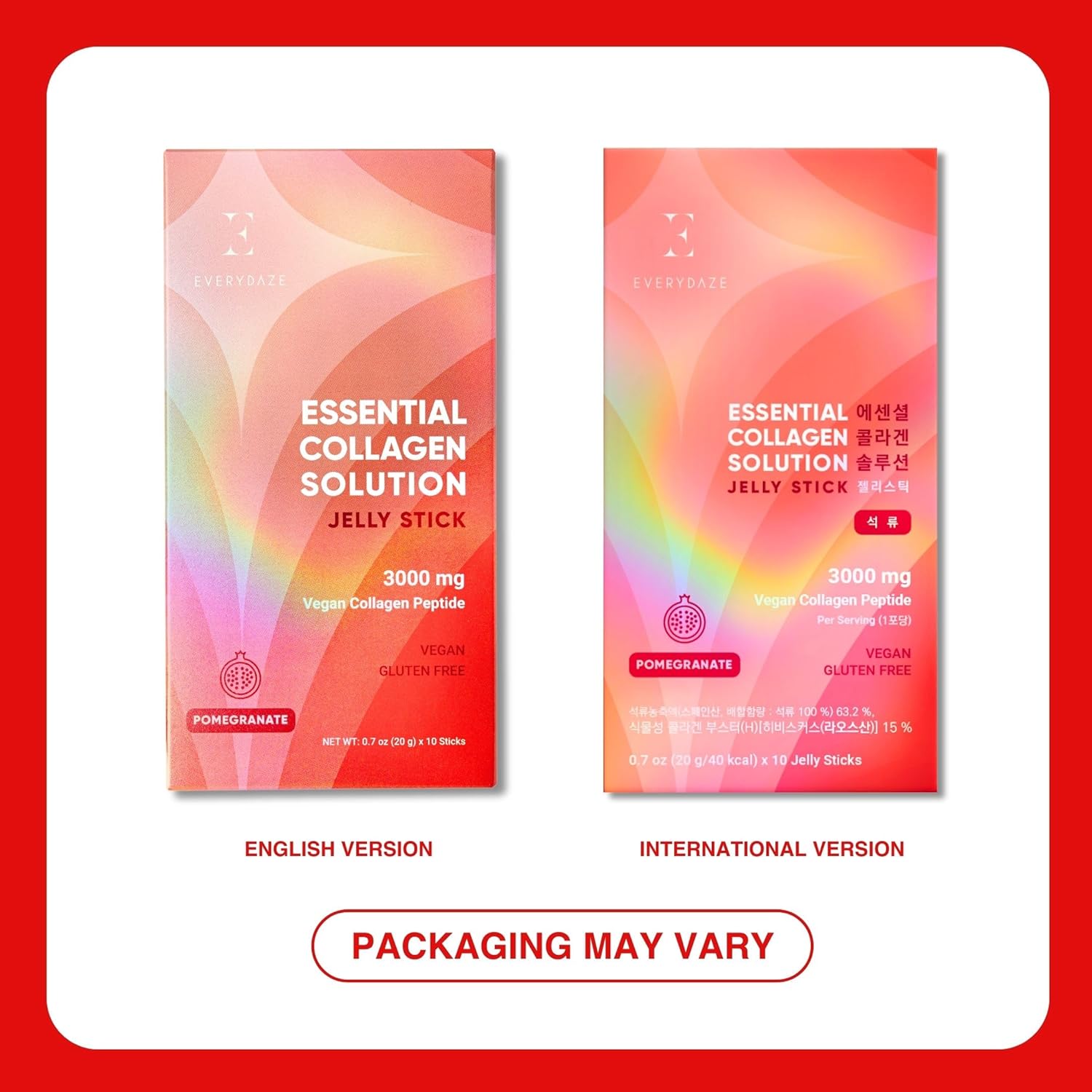 Essential Collagen Solution Jelly Stick delivers a high concentration of vegan collagen peptide and fruit concentration. Each packet contains 3000 mg of vegan collagen peptide per packet.