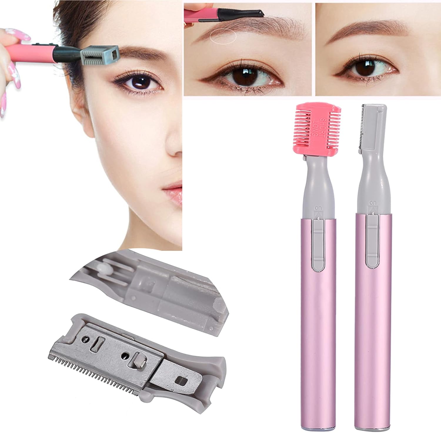 Eyebrow Blade, Portable Electric Face Body Hair Shaver Men Women Precision Nose Ear Hair Trimmer Battery Operated Hair Remove Tool (Pink)