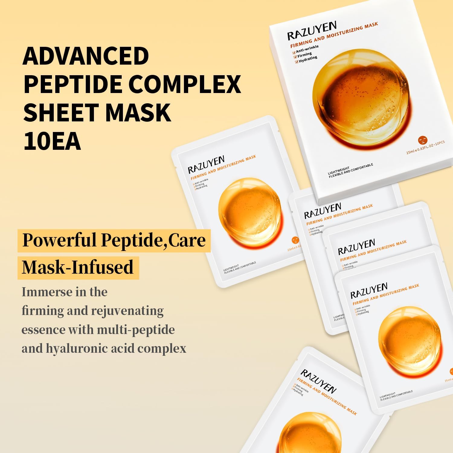 SKIN FIRMING & ANTI-AGING: RAZUYEN sheet mask is enriched with Peptides, including Acetyl Hexapeptide-8, Palmitoyl Tripeptide-1 and Palmitoyl Tetrapeptide-7, to support skin’s collagen, reduce the appearance of wrinkles, and improve firmness and elasticity