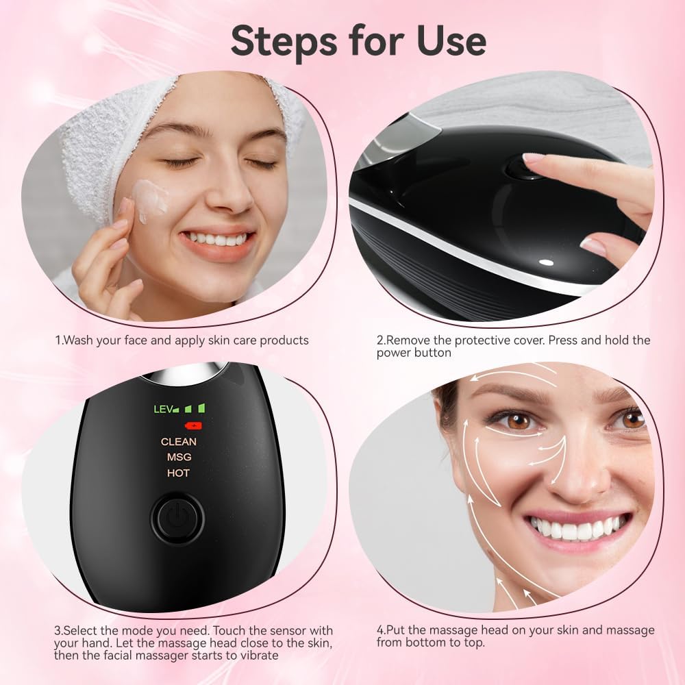 Three Modes Adjustable: This facial massager offers clean mode, heat mode and msg mode. With various skin care functions, you can enjoy professional skin care treatments anytime, anywhere