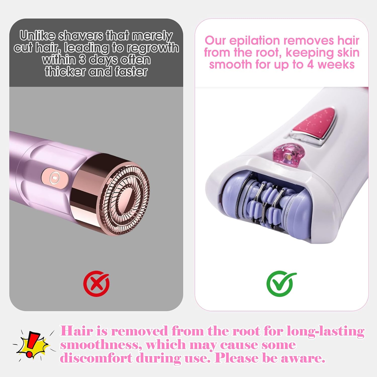 【Smart Illumination & Easy Cleaning for Optimal Hygiene】 Equipped with a built-in light that reveals even the finest hairs, enabling precise and thorough epilation day or night. The epilation head is fully washable and includes a cleaning brush for quick maintenance, ensuring hygienic use and consistent results.