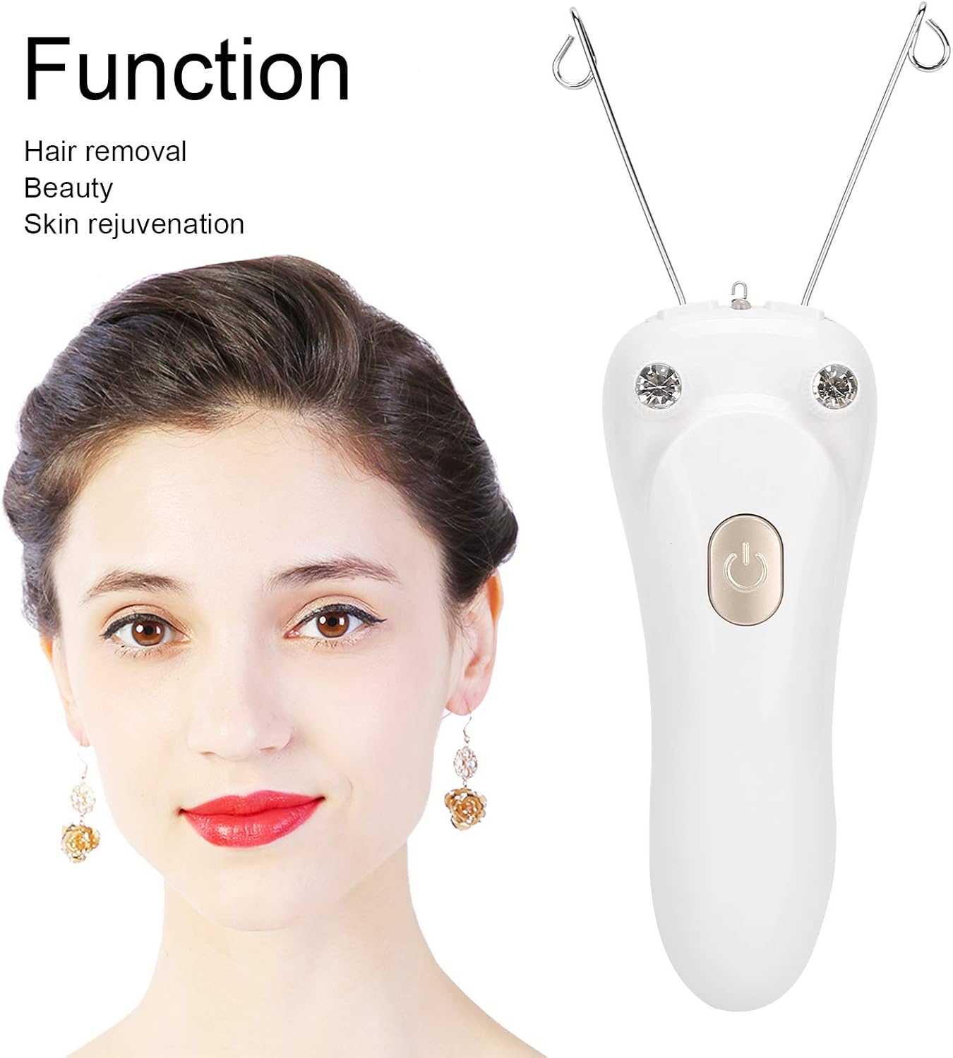 Facial Threading Hair Removal for Women, USB Rechargeable Electric Hair Removal Device Body Hair Removal Machine for Chin Lip Arms Legs, Gold (Cotton Thread & Pearl Powder Included)