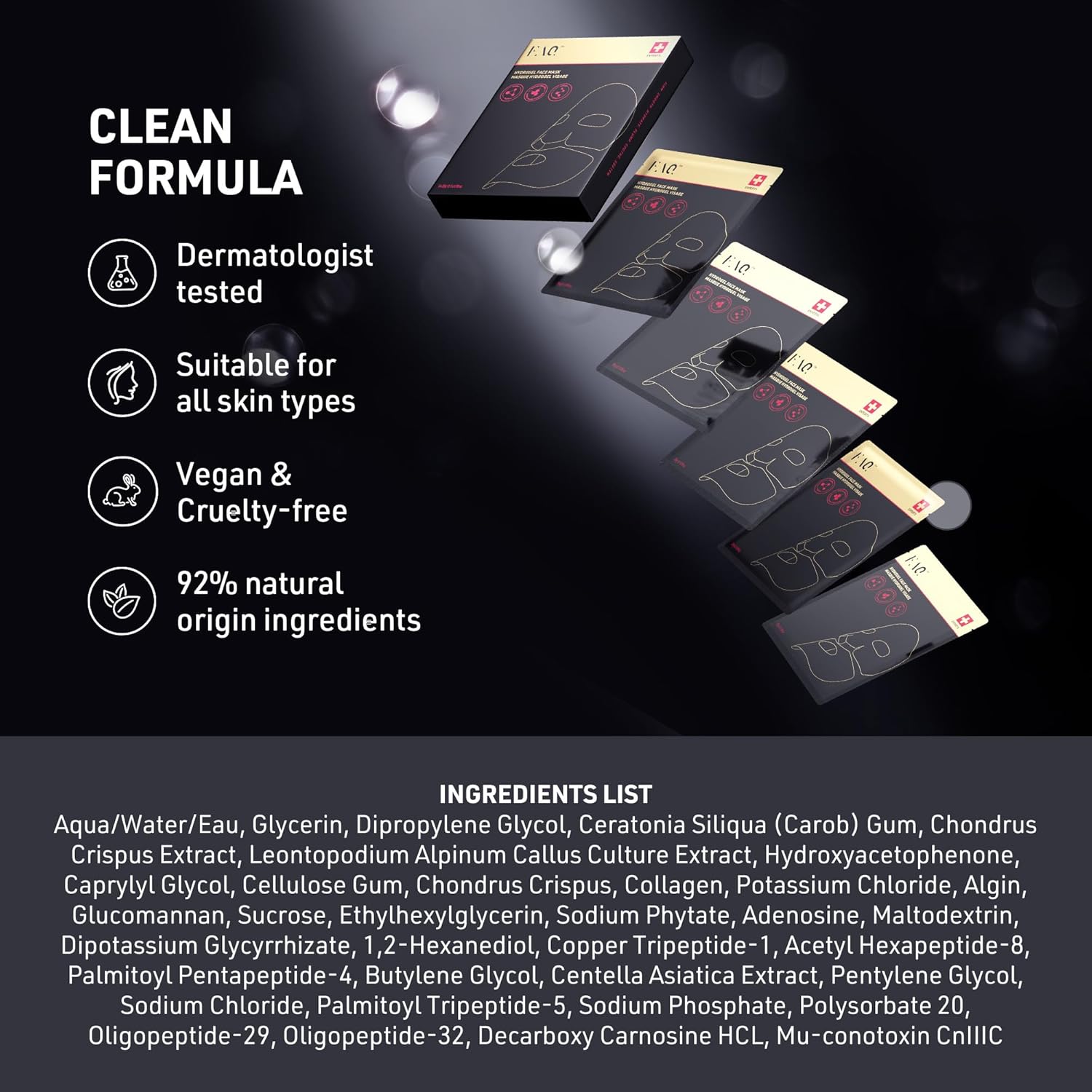 FAQ Glass Skin Collagen Face Mask – Hydrating & Brightening Skincare with Peptides – Pore Minimizing & Dark Spot Remover – Collagen Mask for Face Care & Glass Skin Glow (5pcs)