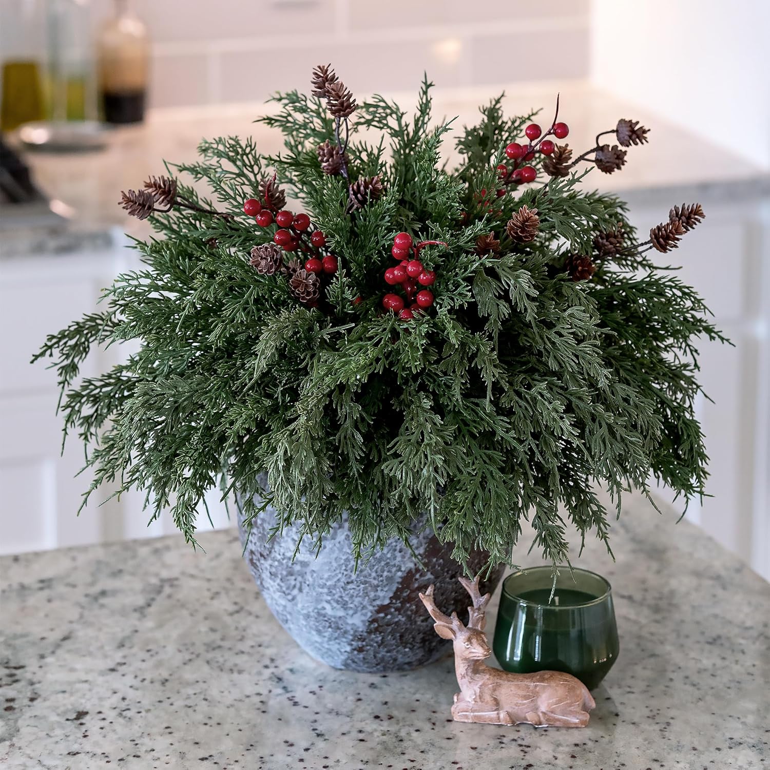 The abundance of cedar stems offers creativity and flexibility for decorating various spaces, like kitchens, dinning room, Christmas centerpieces, home decor, etc.