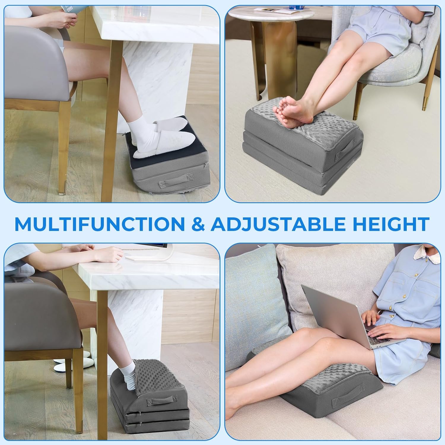 Multi-purpose Office Footrest Under Desk: This versatile footstool can be used for work, rest or gaming. Not only can it be used to support the feet, but it can also be placed under the knees to support your legs, or placed on a chair to support your back. Customize the usage that suits you according to your preferences for maximum comfort. It is also an ideal gift for your family, friends, or colleagues.