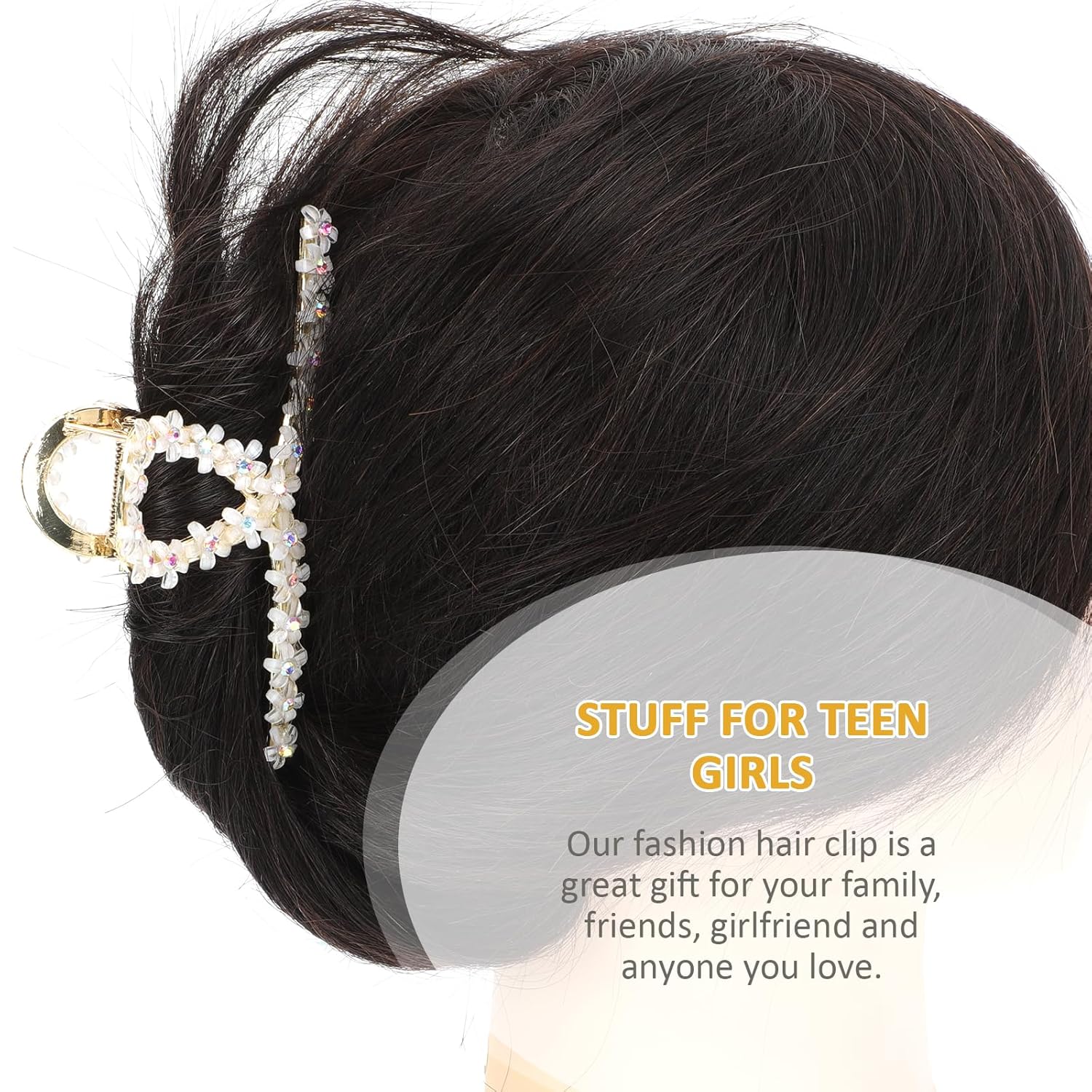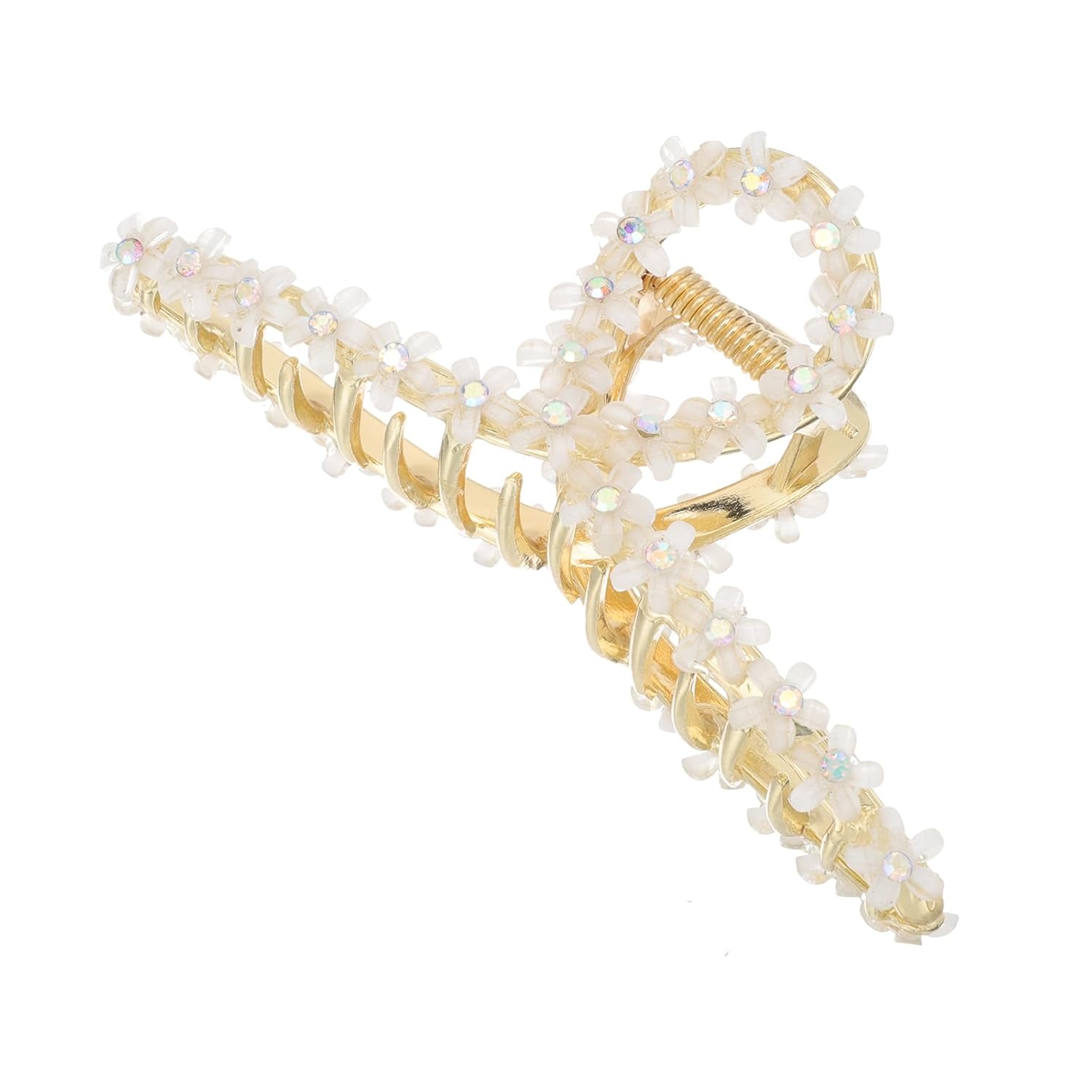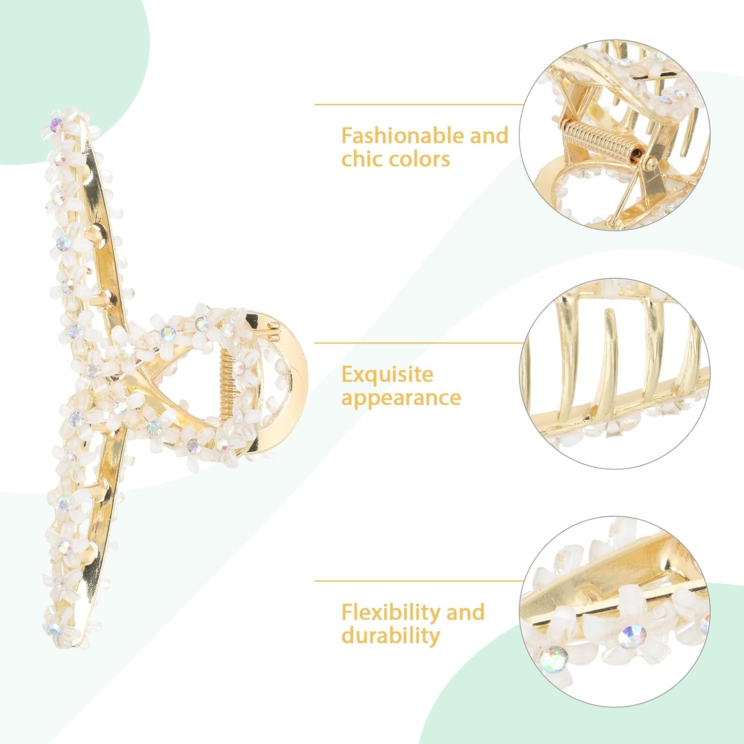 Large Metal Hair Claw Clip with Rhinestone Flowers Gold Hair clips for Womens Thick Thin Hair Hairpin Shark Clip Non-Slip Hair Barrette Hair Accessories