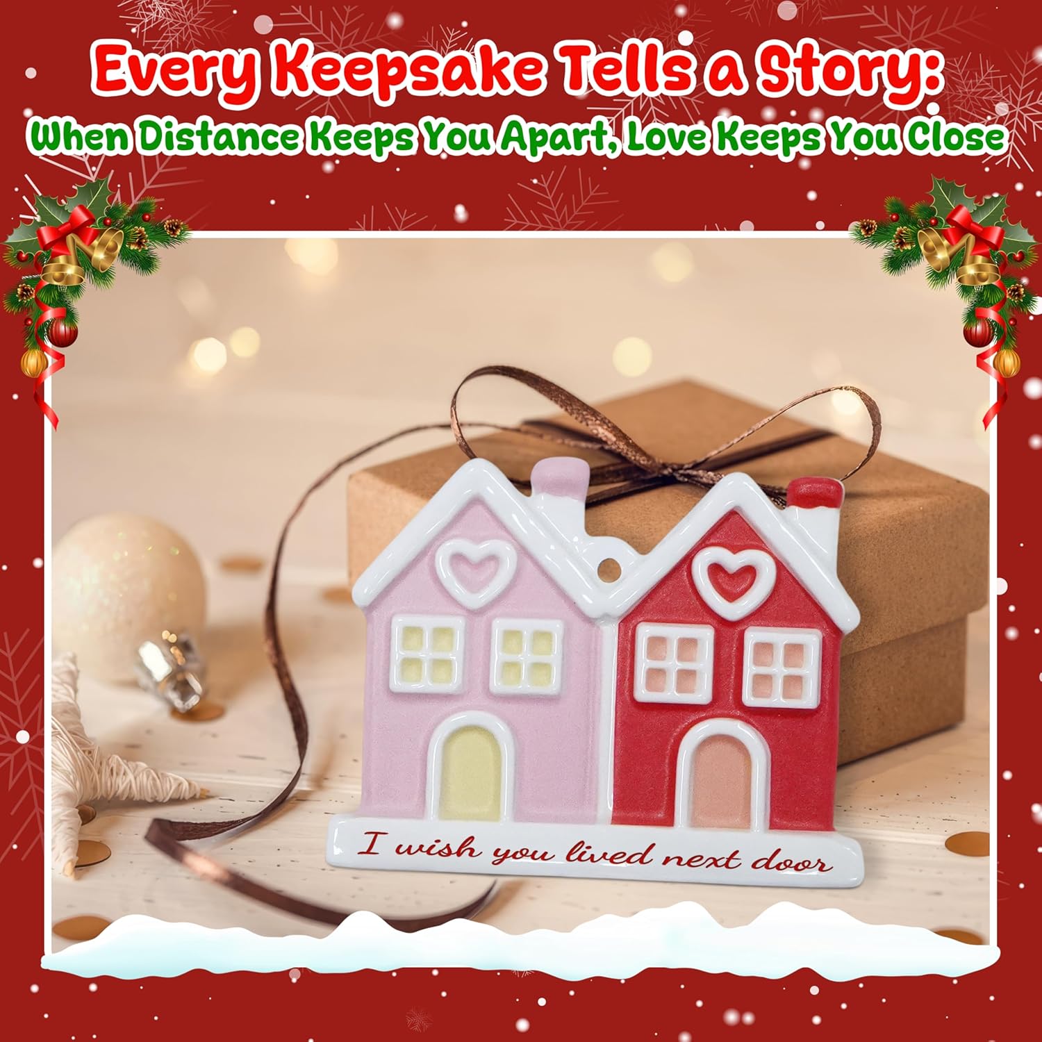 VERSATILE FOR CHRISTMAS DECOR – Whether on Christmas tree decor, Christmas table decorations, or Christmas window decorations, this I Wish You Lived Next Door ornament brings cozy nostalgia to every corner! A heartwarming option as friends gifts for women and long distance best friend gifts to bridge hearts across miles.