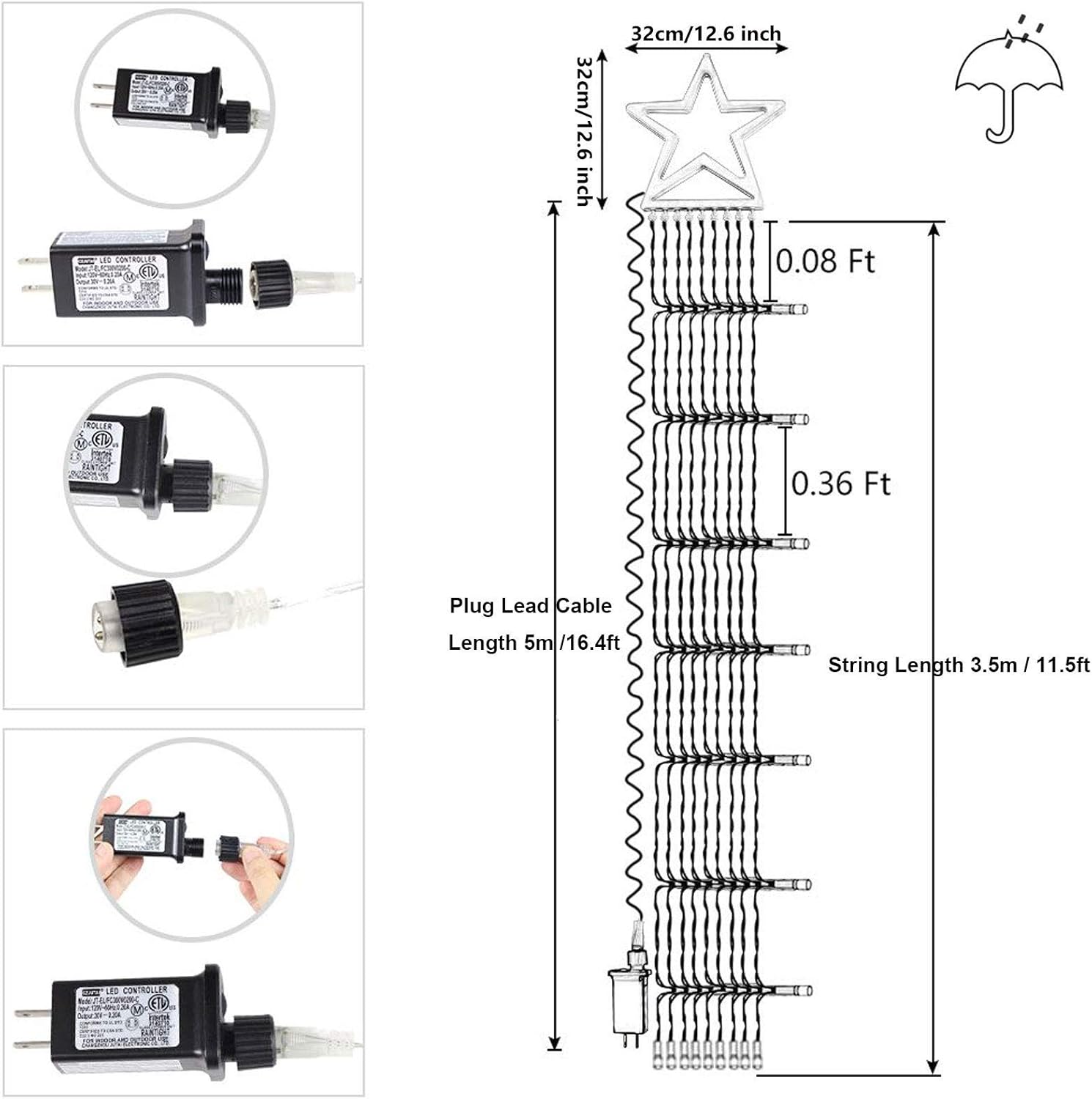 【Multicolor Christmas String Lights】 The Christmas star string lights work great with trees from around 8 feet to 13 feet tall. Just hanging the large star about 11 feet up on the top of the tree, then drape the 9 string lights on the branches/ground or fix with metal inserts, following the shape of the tree. It is also elegant Christmas decorations inside to decor your bedroom window, curtain, house, roof, wall, etc.