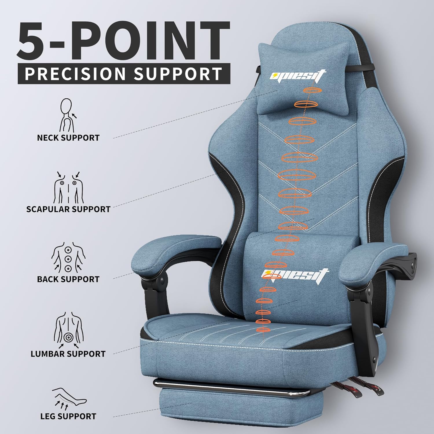 【Full-Dimensional Ergonomic Support】 The wide wing-shaped backrest is paired with a 45D high-density memory foam headrest and lumbar support, perfectly aligning with the natural curve of the spine. It provides precise support for the head, neck, shoulders, back, waist, hips, and legs, scientifically distributing up to 95% of body pressure. This effectively alleviates discomfort from prolonged sitting, ensuring comfort whether gaming, working, or relaxing.