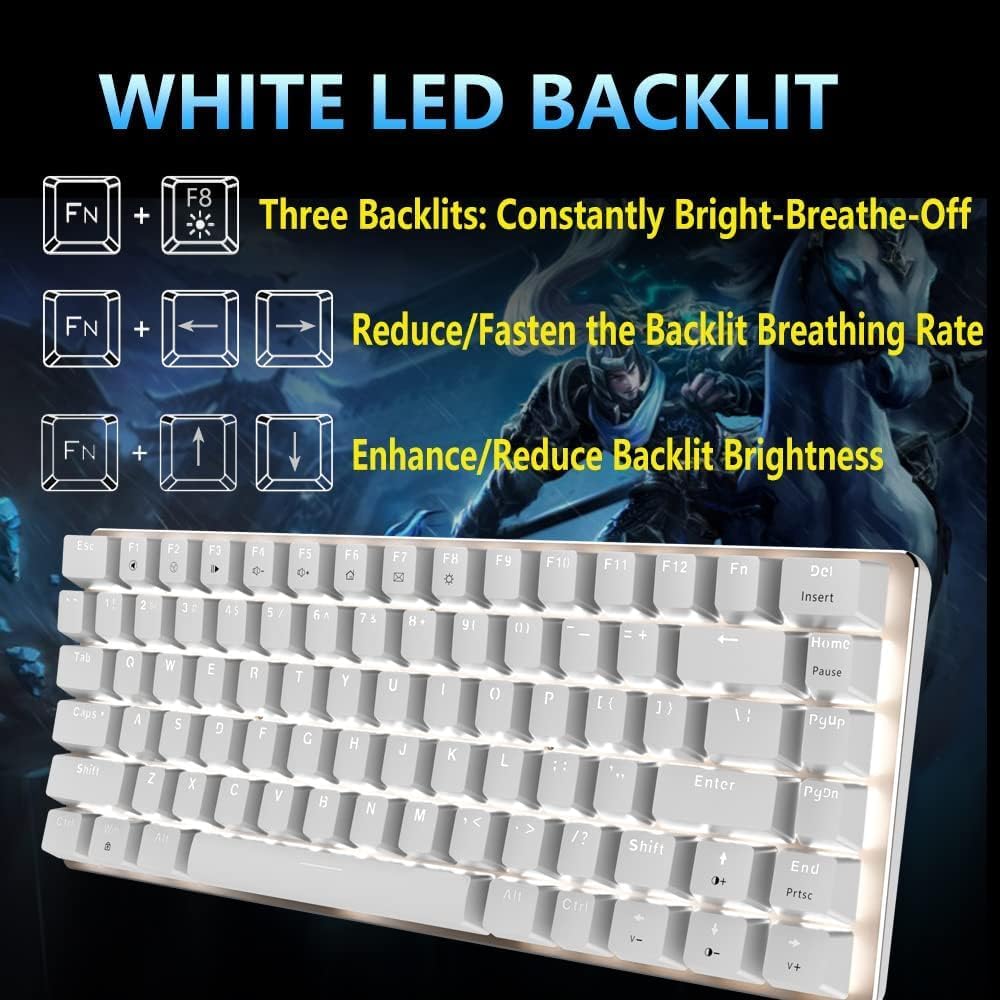 【White Backlit Gaming Keyboard】The white backlit mechanical keyboard provides pure crystal vision Made of highgrade ABS and metal materials it is laserengraved with character keys and is extremely durable It also features 12 multimedia buttons nonslip and splashproof design adjustable foot pads and a goldplated USB cable that provides the perfect typing angle and high quality experience