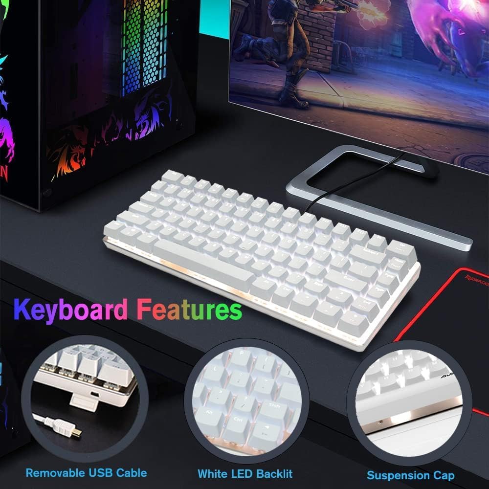 Gaming Keyboard and Mouse and Mouse Pad,Wired White LED Backlit Mechanical Keyboard,Superlight RGB Gaming Mouse,12000DPI Optical Sensor,6 Programmable Buttons Mice for PC Gamers