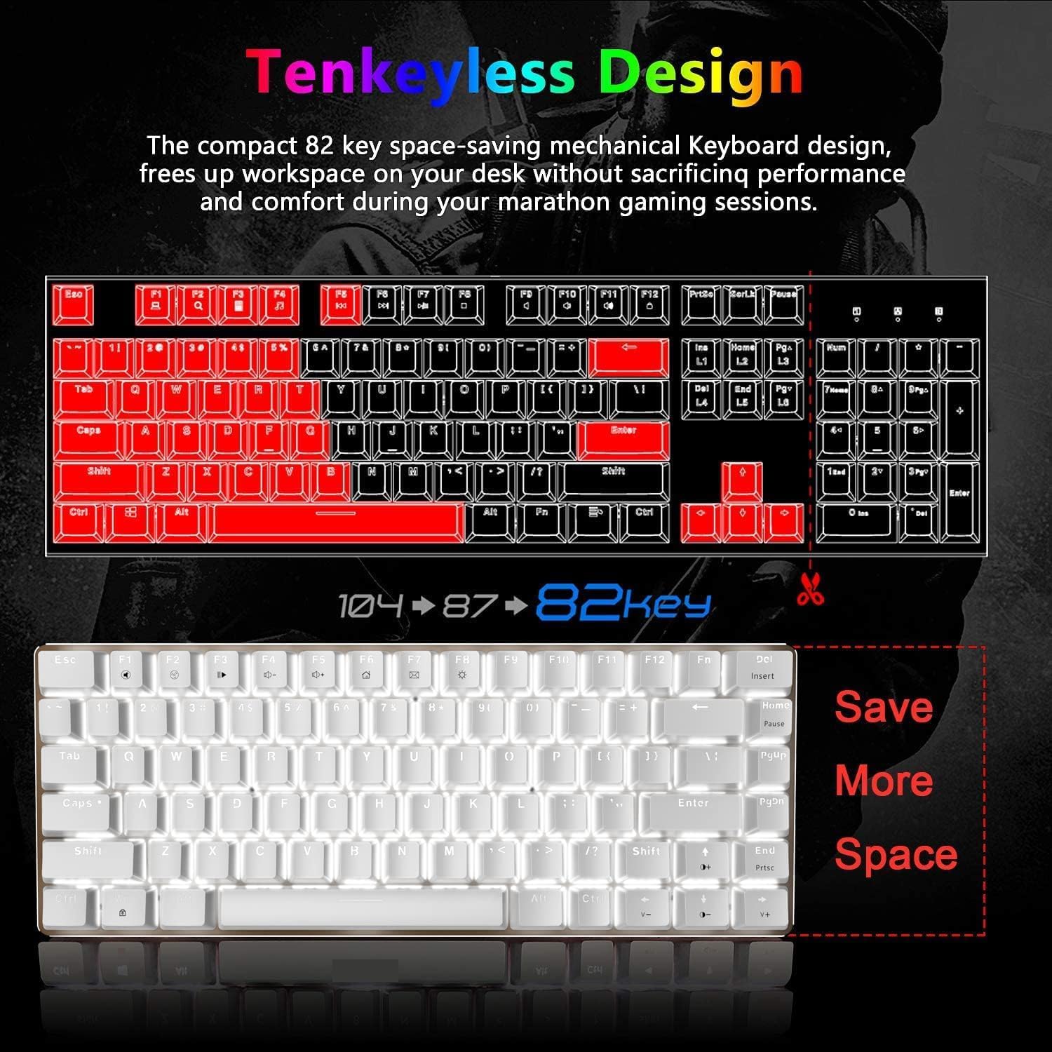 【82 keys Compact keyboard】This mini mechanical keyboard has a very simplified design that reduces the size to 12.2 x 4.72 inches while maintaining the usual keys.The compact size saves space.The plug-and-play design of the plug-in USB cable also greatly increases portability.This is a perfect mechanical keyboard for office or home use.