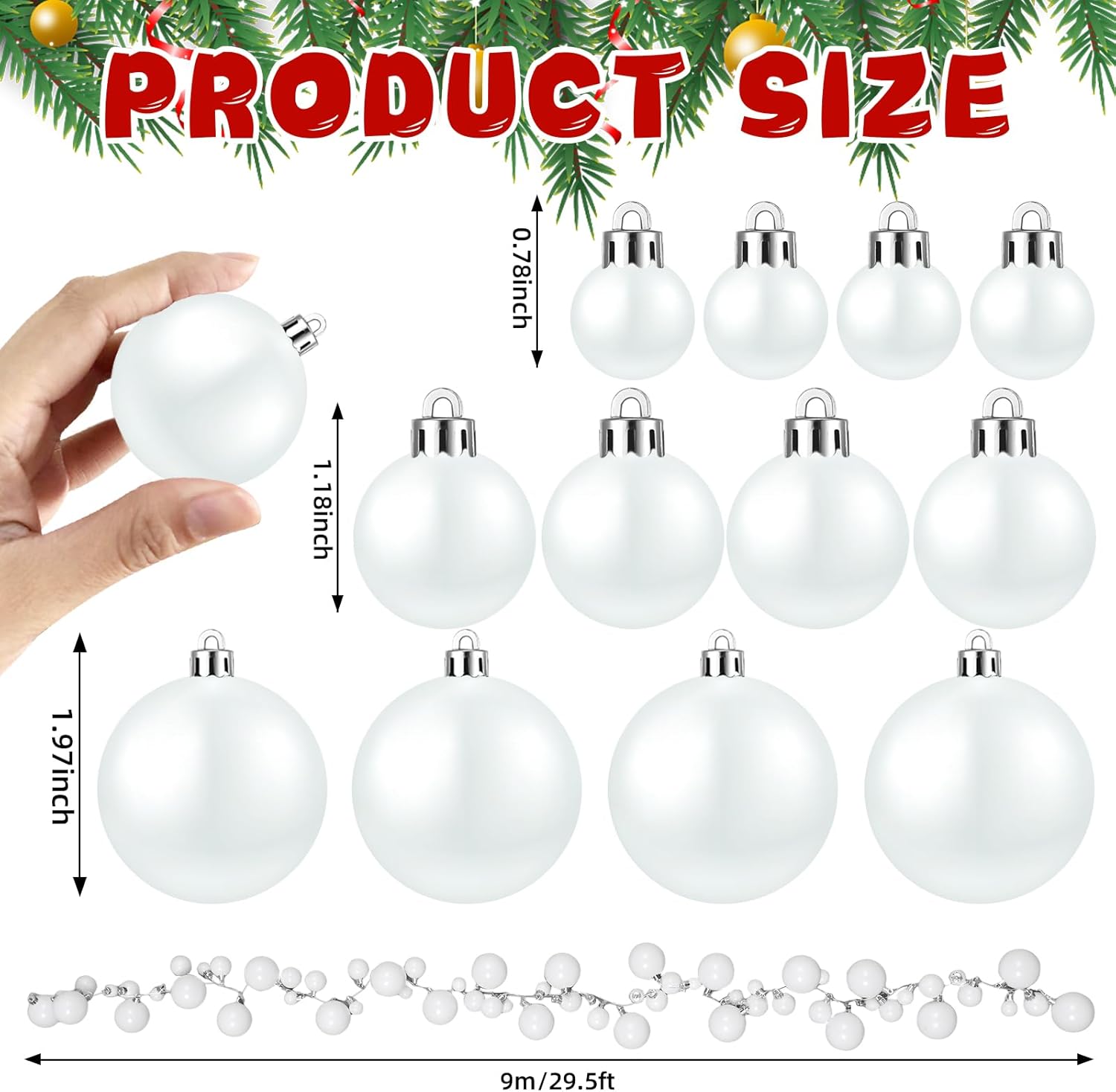 Extra Long Size: the Christmas bauble garland is about 29.5 feet in length, and there are about 350 balls in the Christmas bulb garland, including 120 large 2 inches ball, 120 medium 1.2 inches balls, and 120 small 0.8 inches balls; There are lanyards on both ends of the Christmas ball string, which helps to hang easily