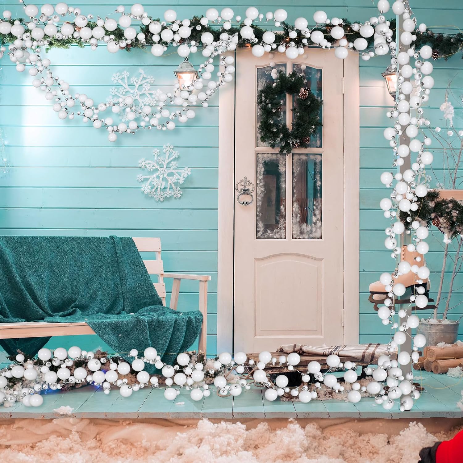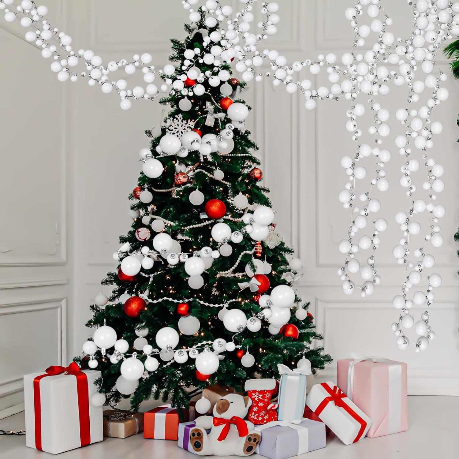 Package: you will receive 1 long Christmas ball garland, the spheres on the garland are white color with different sizes, shinny, and delicate; The ball garland is made of traditional Christmas colors to help create a bright and lively Christmas