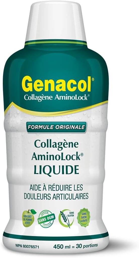 JOINT HEALTH SUPPLEMENT: Scientifically validated through three clinical studies, Genacol’s ultra-hydrolyzed AminoLock liquid collagen helps alleviate joint discomfort and promotes optimal joint health.