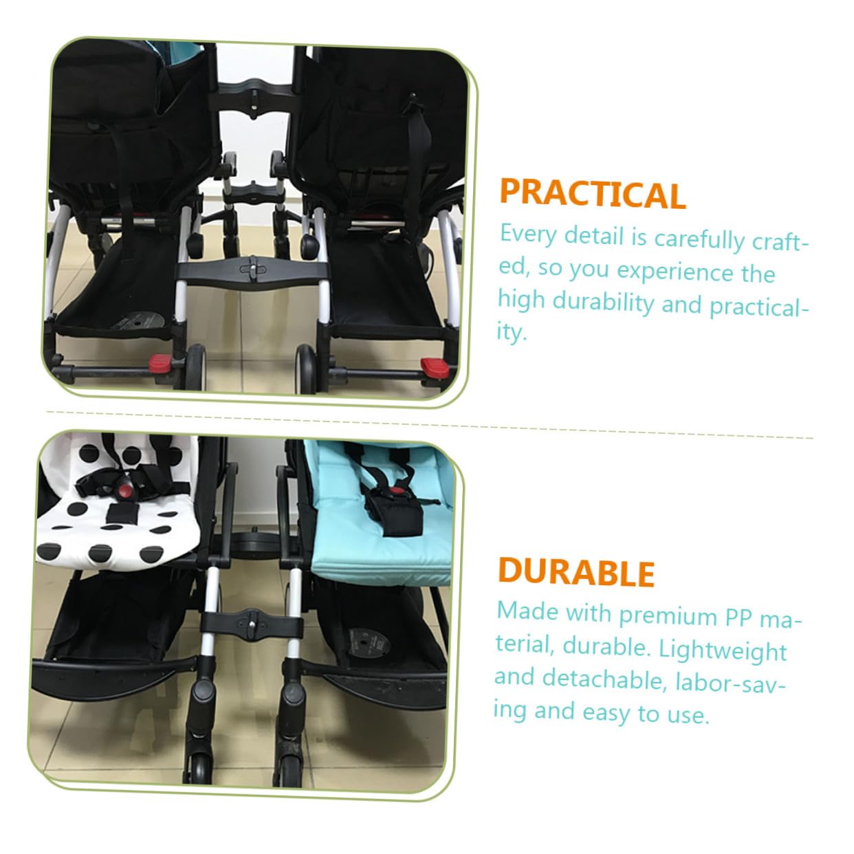 Adjustable Stroller Connector It is a very practical accessory that will meet your needs well.twin stroller attachment This product is a stroller connector, which is made of durable PP material, with good texture, safe and practical.double stroller attachment Easy to install and use, it can be easily applied to your stroller
