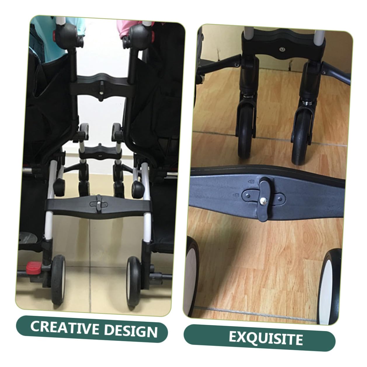 – With adjustable design, these unique connectors can fit most strollers pushchair connectors.