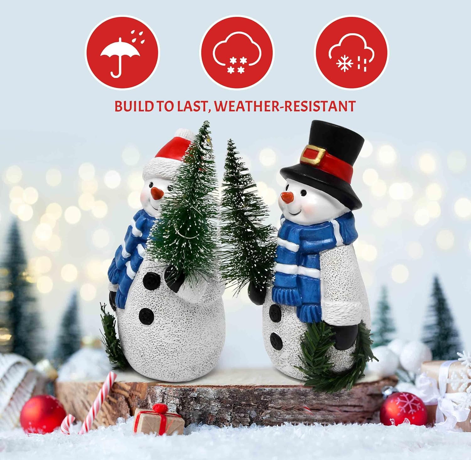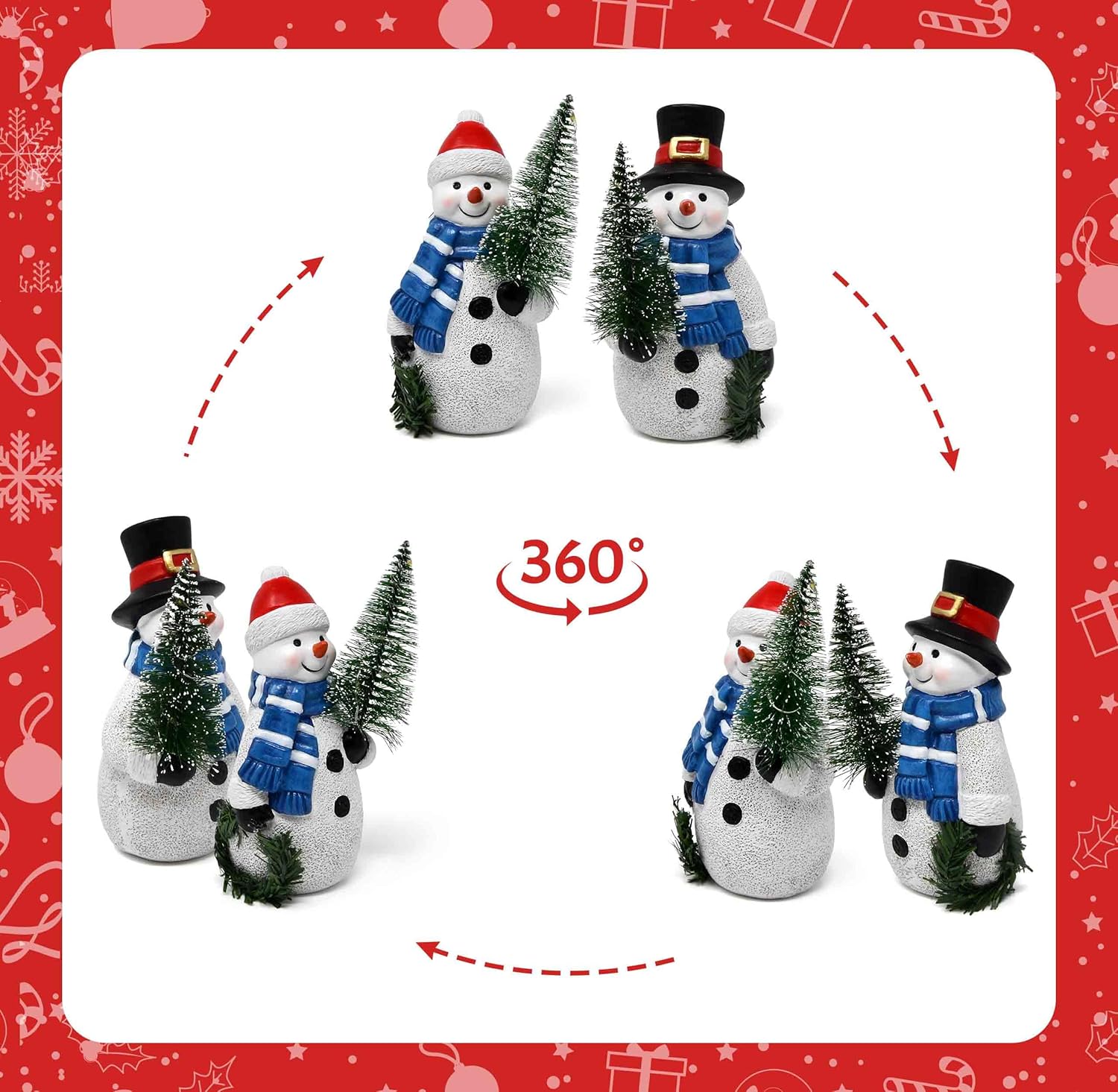 Premium Quality: Handcrafted from durable high quality resin with glittery snow mold finish; each life like snowman Christmas decoration model features hand painted faces; intricate designs capturing the festive spirit; non toxic & weather resistant