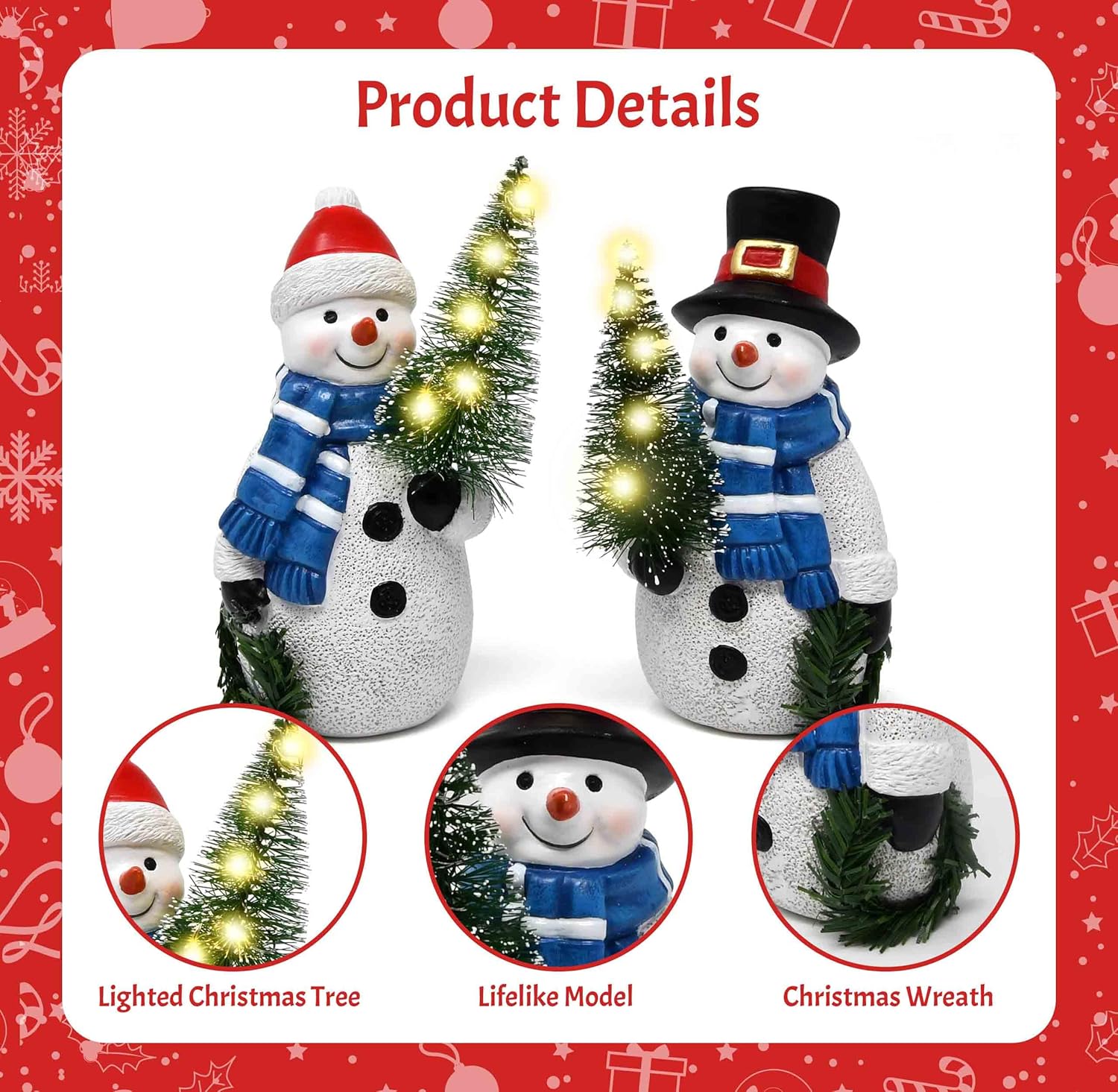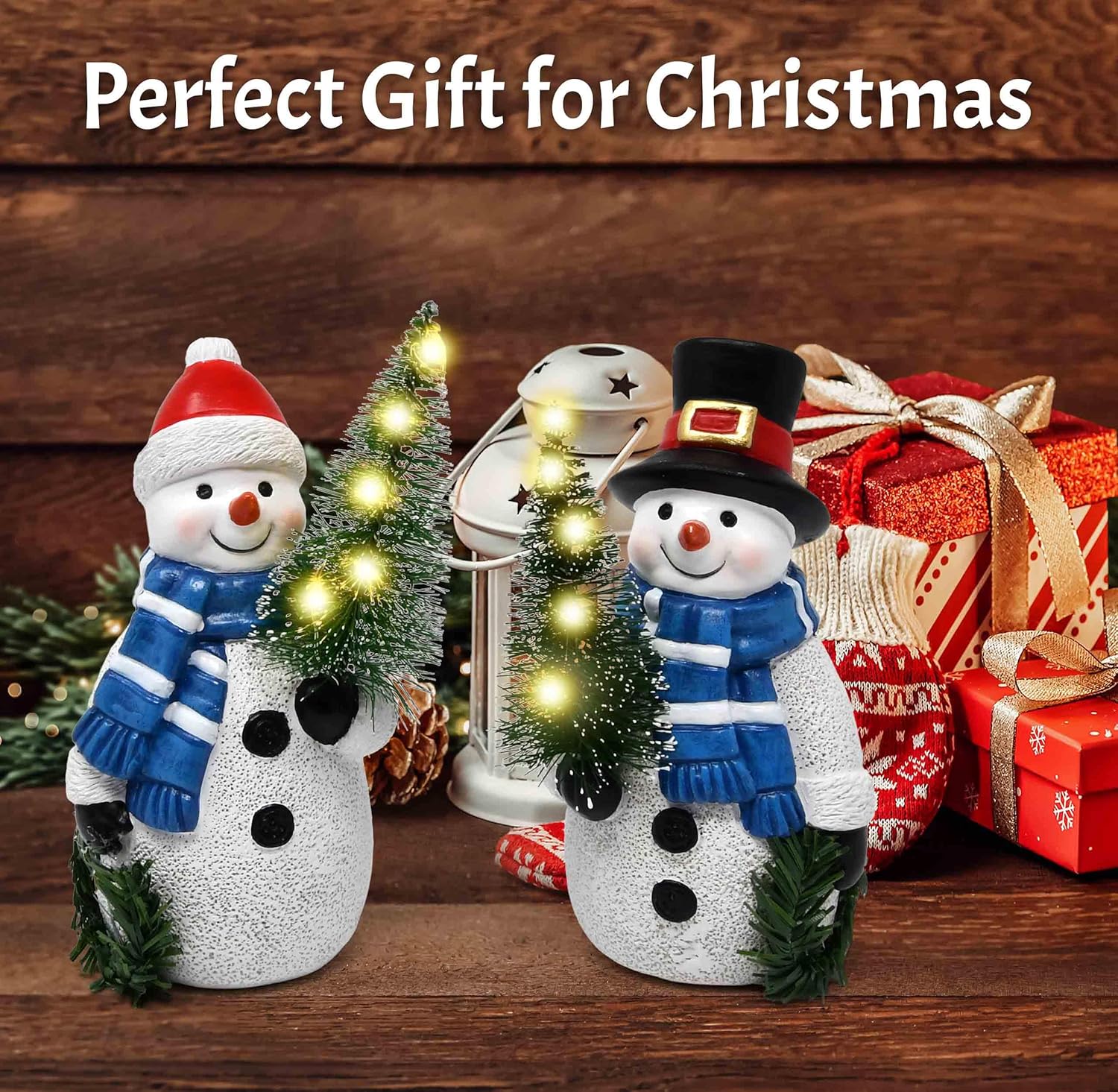 Gift Boutique Christmas Lighted Snowman Figurines Set of 2 Snowmen with Tree Wreath Indoor Tabletop Decorations Ornament Figurine Holiday Centerpieces