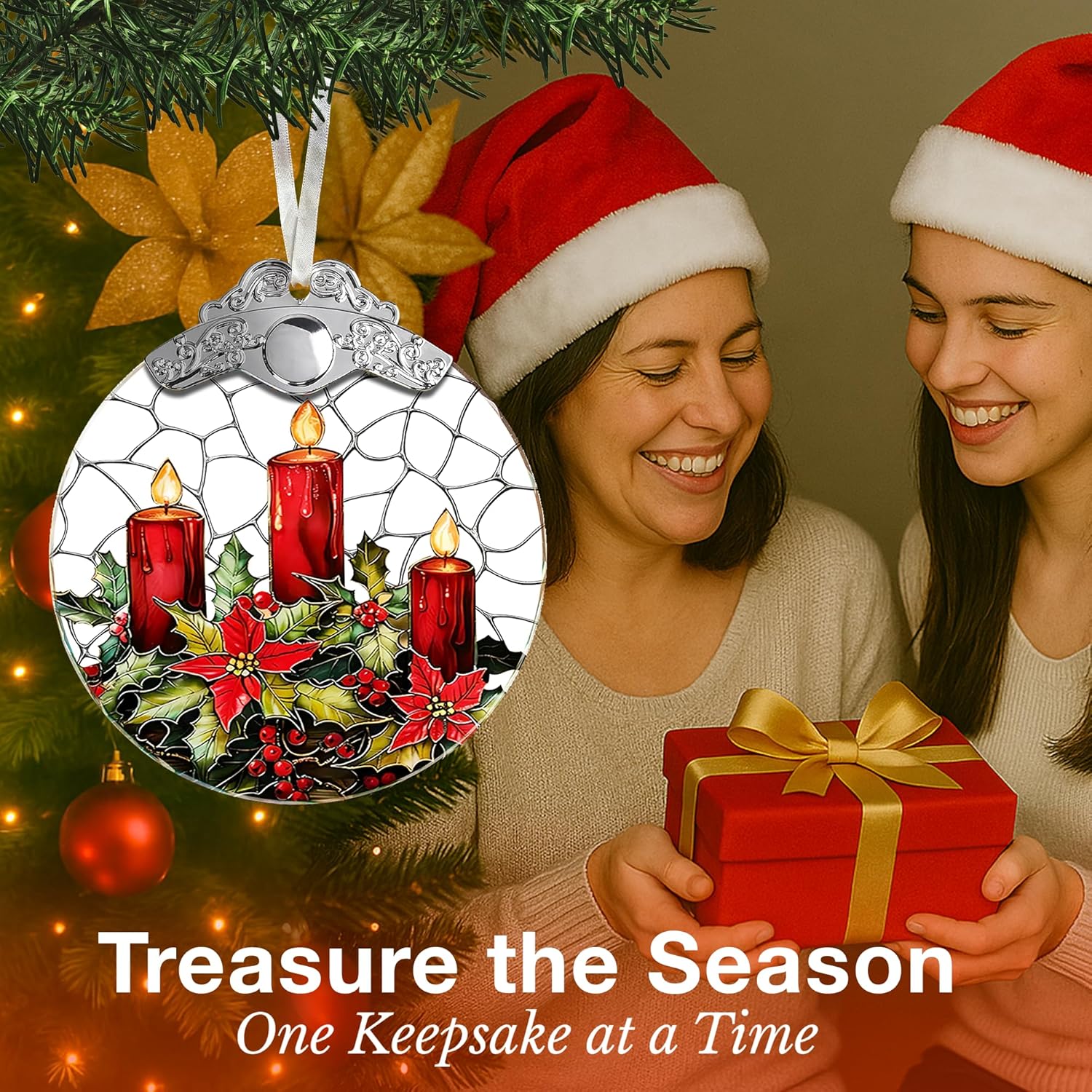 CAPTURE CHERISHED MEMORIES WITH GLASS ORNAMENTS Celebrate your love with our elegant glass christmas tree ornaments, beautifully designed for lasting memories. This fancy christmas ornament combines stained glass ornaments for christmas tree, candle ornaments for christmas tree, and ornament candle elements, making it a keepsake christmas ornament perfect for commemorating special moments year after year.
