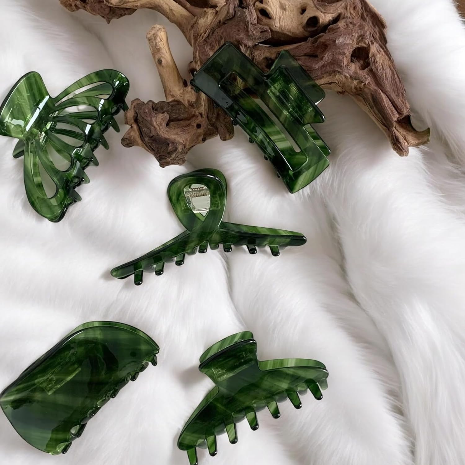 Green Plastic Hair Claw Clip, Fairy Wings, Butterfly, Geometric Hollowing Hair Claw High Grade Acetic Acid Shark Clip For Woman Girls (Green 3)
