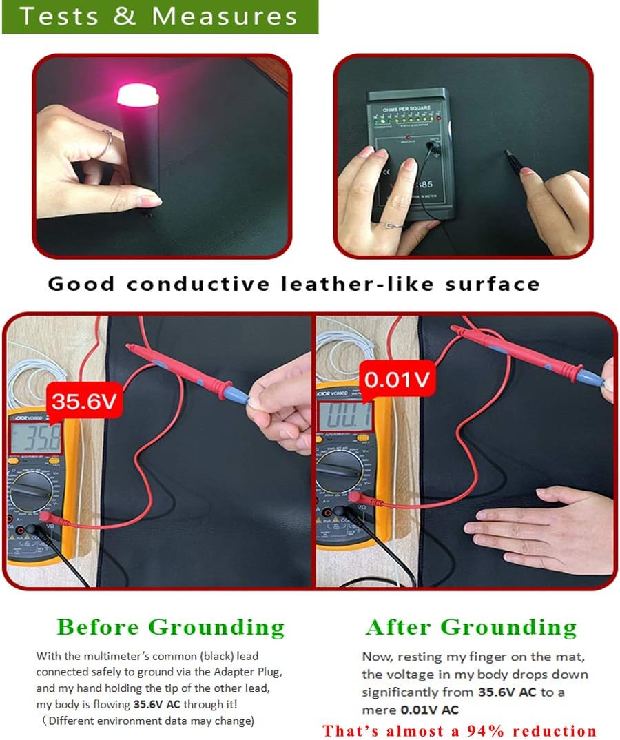 5.Highly-conductive,carbon leatherette: This Grounding mat 54-71 inch for the bed is made of 100% conductive PU leather with breathable holes, having the advantage of being relaxed and comfortable.The more your bare skin comes in contact with the mat directly, the quicker the electron transfer takes place and the more benefit you receive.It is meant to lay under your body, and to be placed on top of your regular bottom sheet.