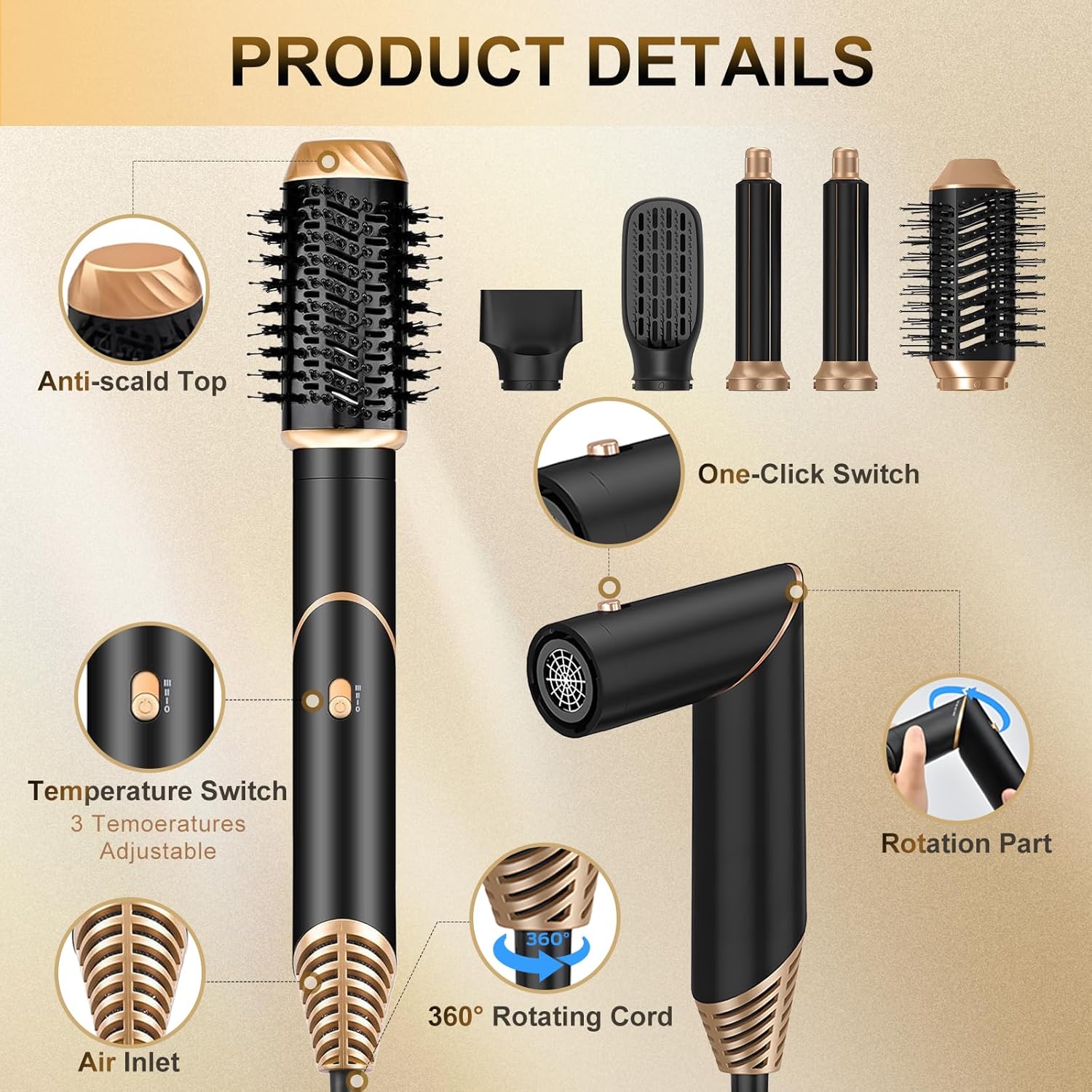 Hair Dryer Brush Set 6 in 1, Anluomania Blow Dryer Brush Foldable, Multi Negative Ionic Curl Hair Dryer Hair Styling Tools, Detachable Air Hair Styler Curling Iron for Curling, Drying, Straightening