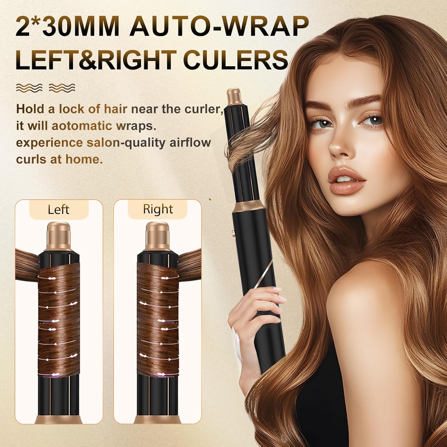 【Automatic Hair Curler】The 2 x 30 mm curling iron releases air to the left and right, automatically sucks in hair, and curls it. The air wrap hair curler allows you to create various curl styles, cut styling time in half, dries hair super quickly, and causes no heat damage.