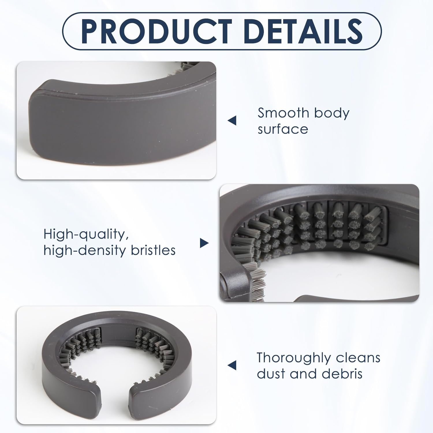 This product is a round hair dryer filter cleaning brush, designed to wrap around circular dryer filters to remove lint, hair, and debris—targeting hard-to-reach gaps that flat brushes miss, no need to disassemble the dryer. As Hair dryer cleaning tool, it maintains consistent airflow by preventing filter clogs, which helps keep dryers working efficiently and avoids overheating during use.