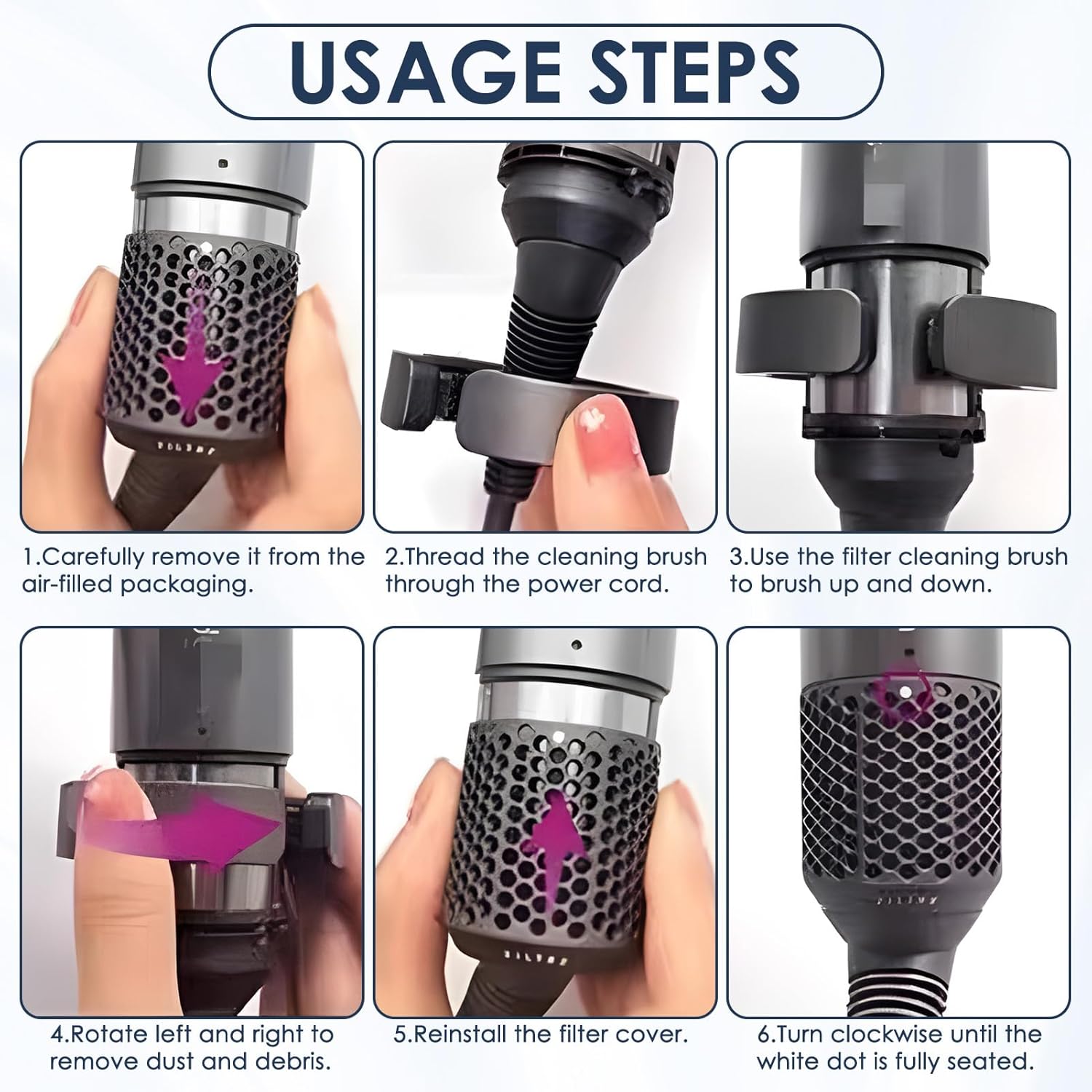 Ideal for home users maintaining personal hair dryers, salon staff cleaning tools between clients, or travelers keeping compact dryers clean; it also works with small styling tools that have circular filters. As cleaning kit , a handy tip: clean the filter after every 5-8 uses—this prevents lint from hardening on the filter, making future cleaning faster and easier.