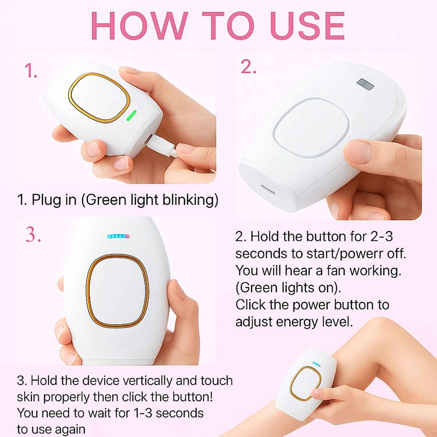Enjoy a painless hair removal experience with latest laser technology. Unlike traditional methods,lPL Hair Remover is designed to be gentle on the skin, making it safe for even the most sensitive areas without causing any discomfort.