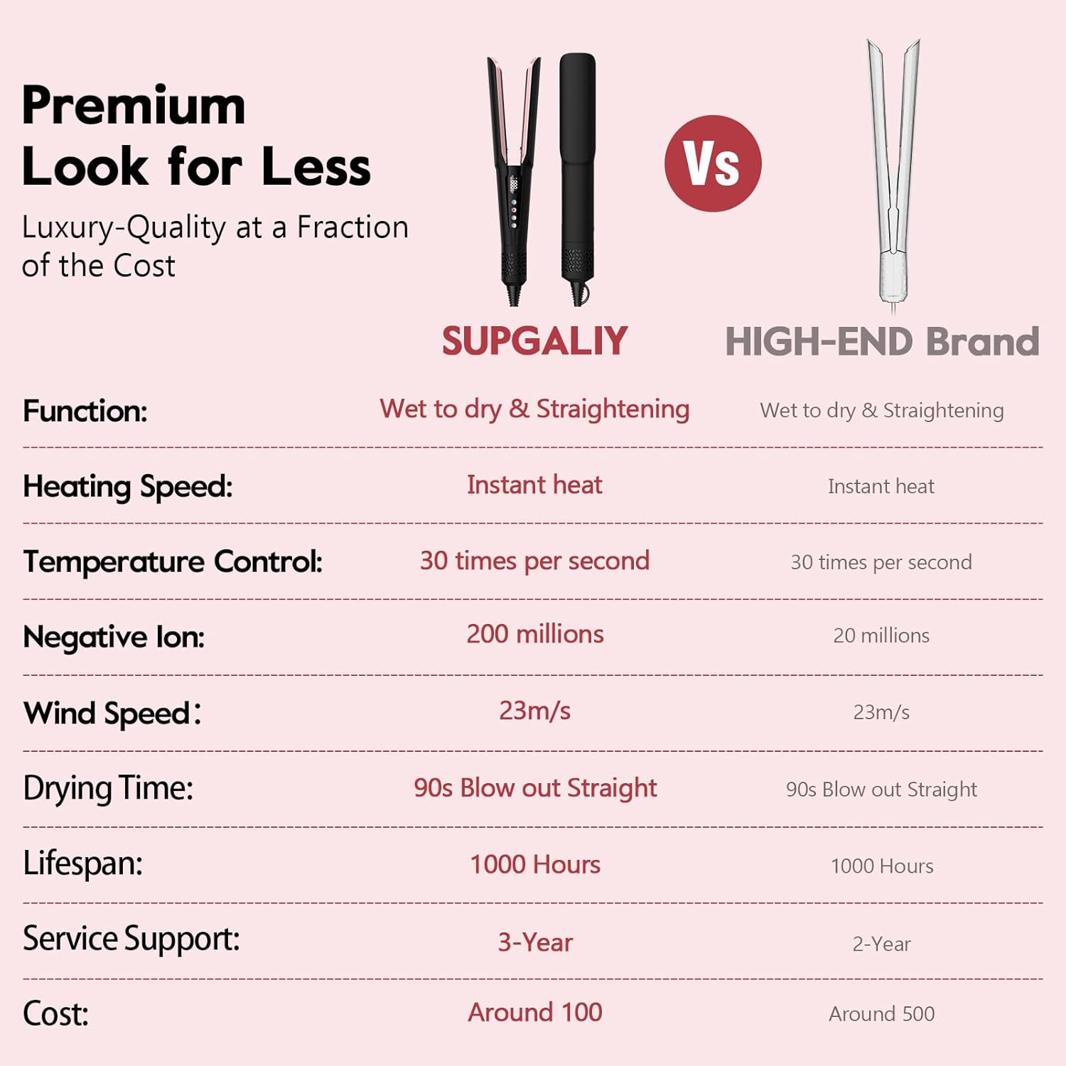 Hair Straightener – 2 in 1 Wet to Dry Hair Dryer and Straightener with High-Speed Airflow + Rapid Heat-Up + Customizable Temperature + LCD Display & Auto Shut-Off + No Heat Damage