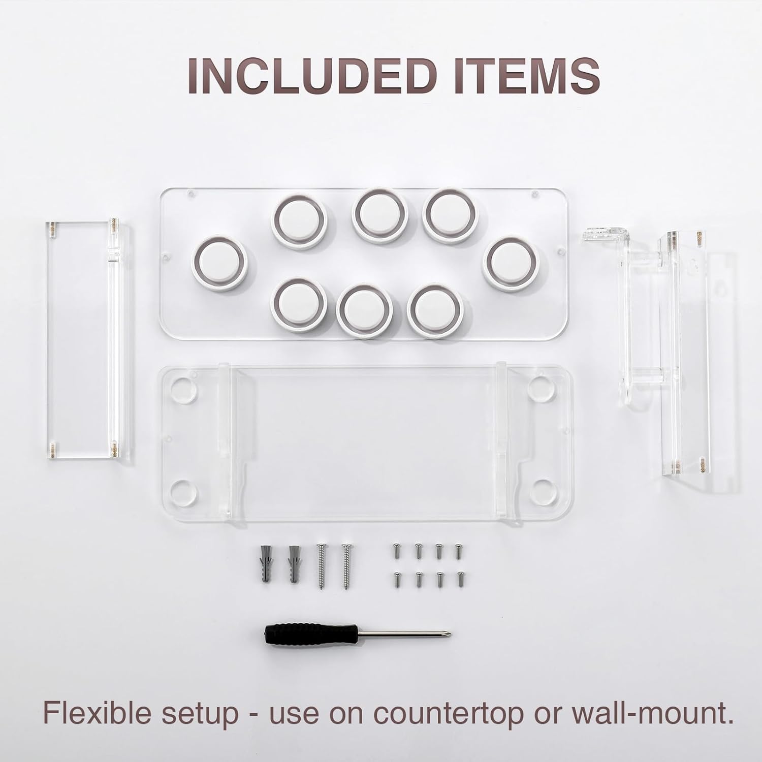 [Easy Setup] The holder comes with screws and a screwdriver for quick assembly. Mount it on the wall or place it on your counter—setup takes just minutes.