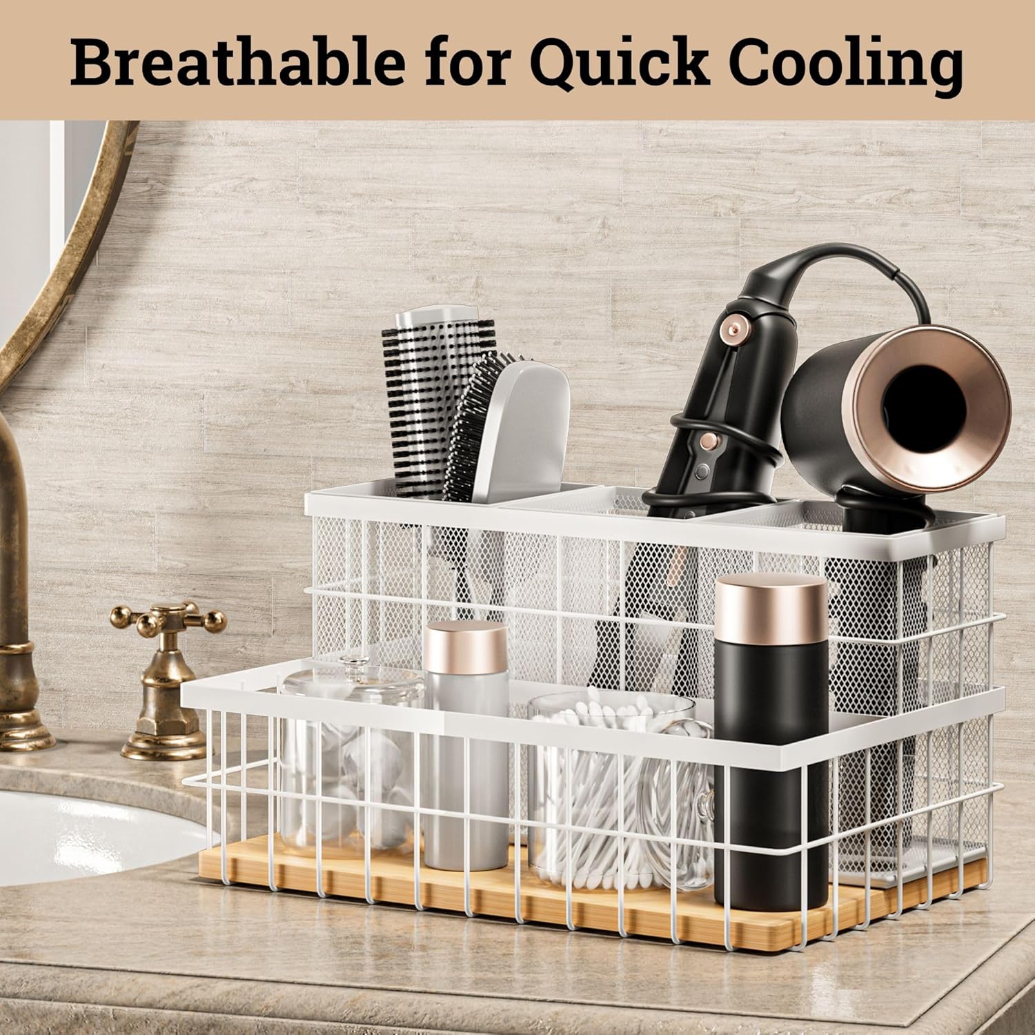 BREATHABLE & SPACIOUS BEAUTY TOOL ORGANIZER – The mesh baskets and open frame are designed to let your hot hair tools cool quickly and safely. The compartments are deep and spacious for optimal storage, and your items are easy to see and reach.