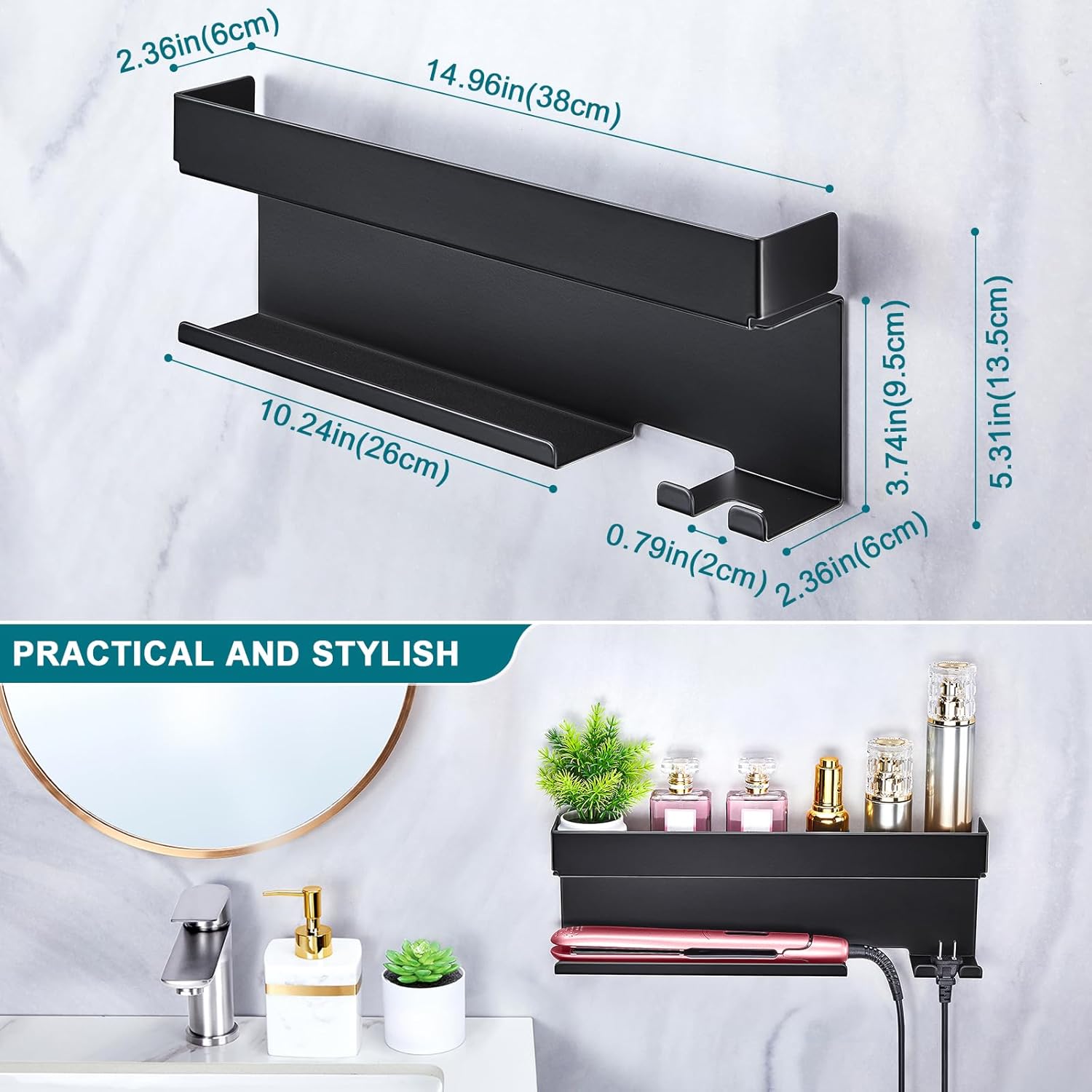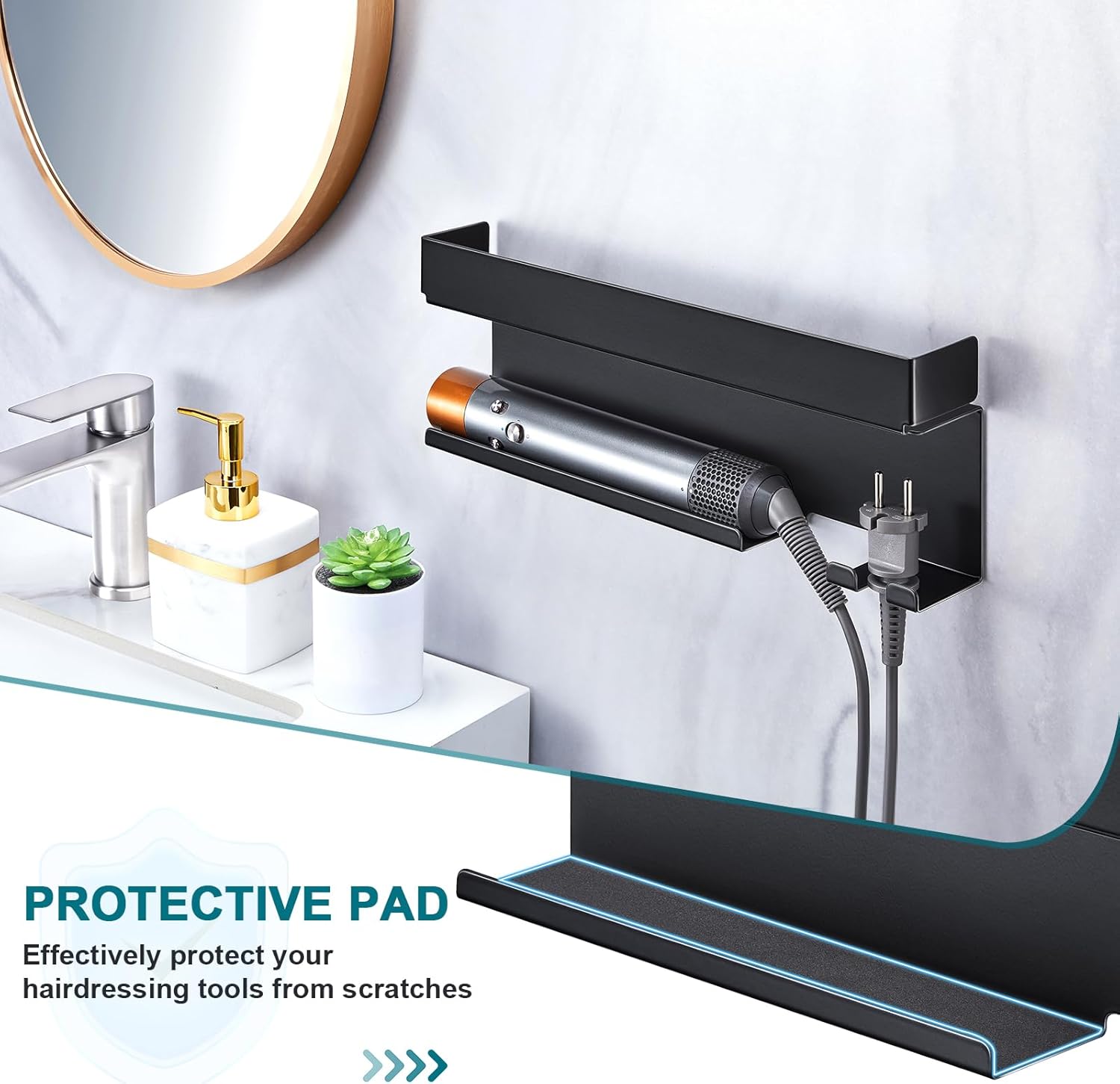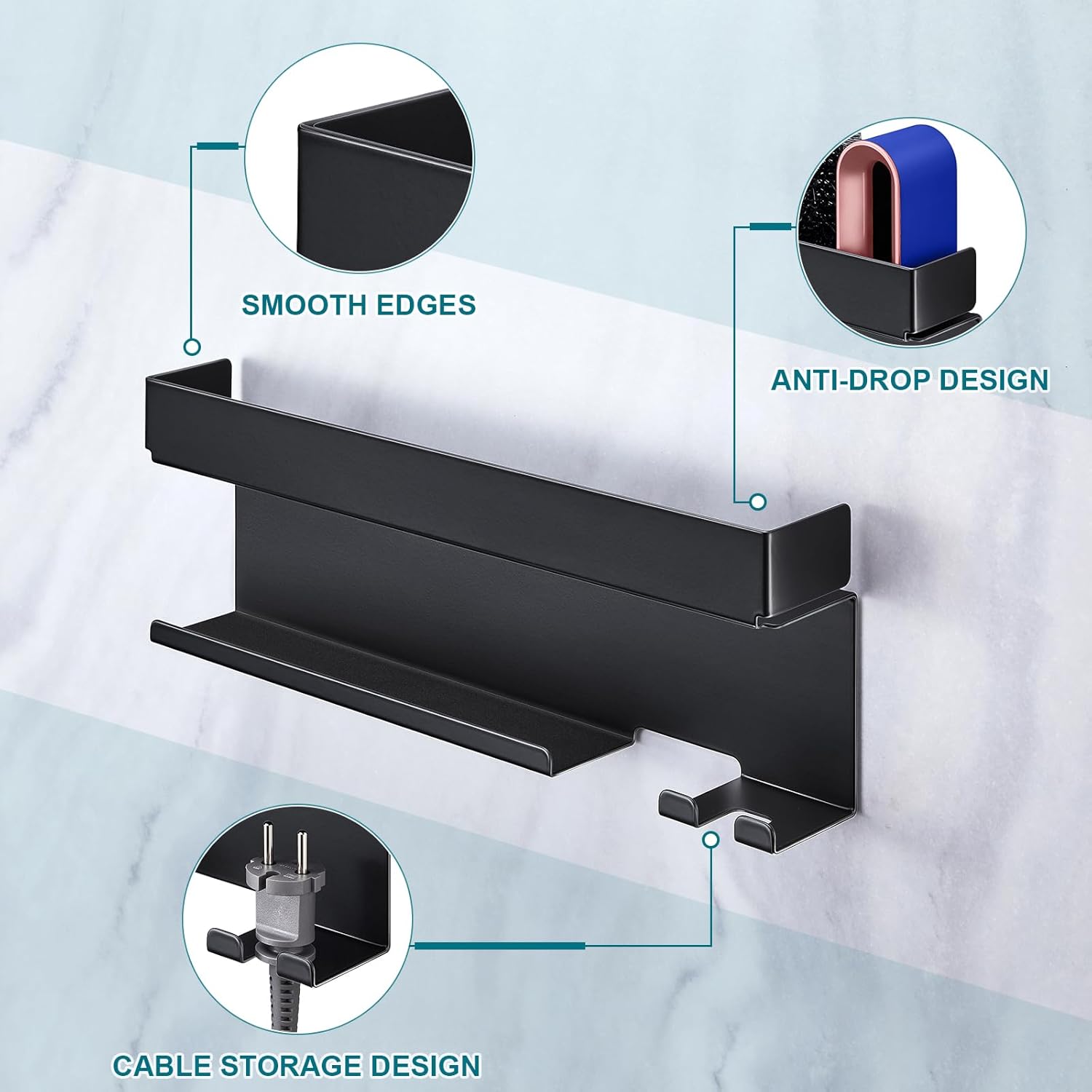 Hair Tool Organizer Wall Mount, Storage Holder for 7 in 1 Curling Iron Styler Accessories, Curling Iron Holder, Black Hair Dryer Holder, Adhesive Hair Straightener Holder