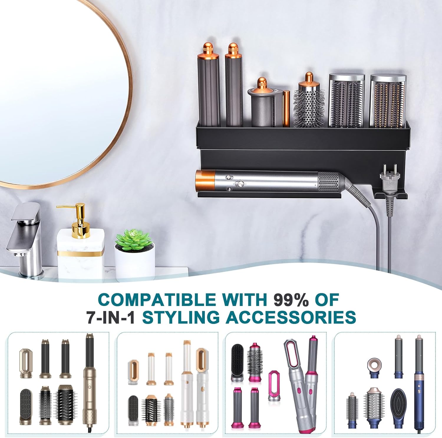 EASY TO STORE: Our wall mount hair tool organizer easily stores the 7-in-1 styler hair dryer accessories. Simple design of the holder, hair tools can be easily stored and taken out, say goodbye to the clutter and keep things tidy.