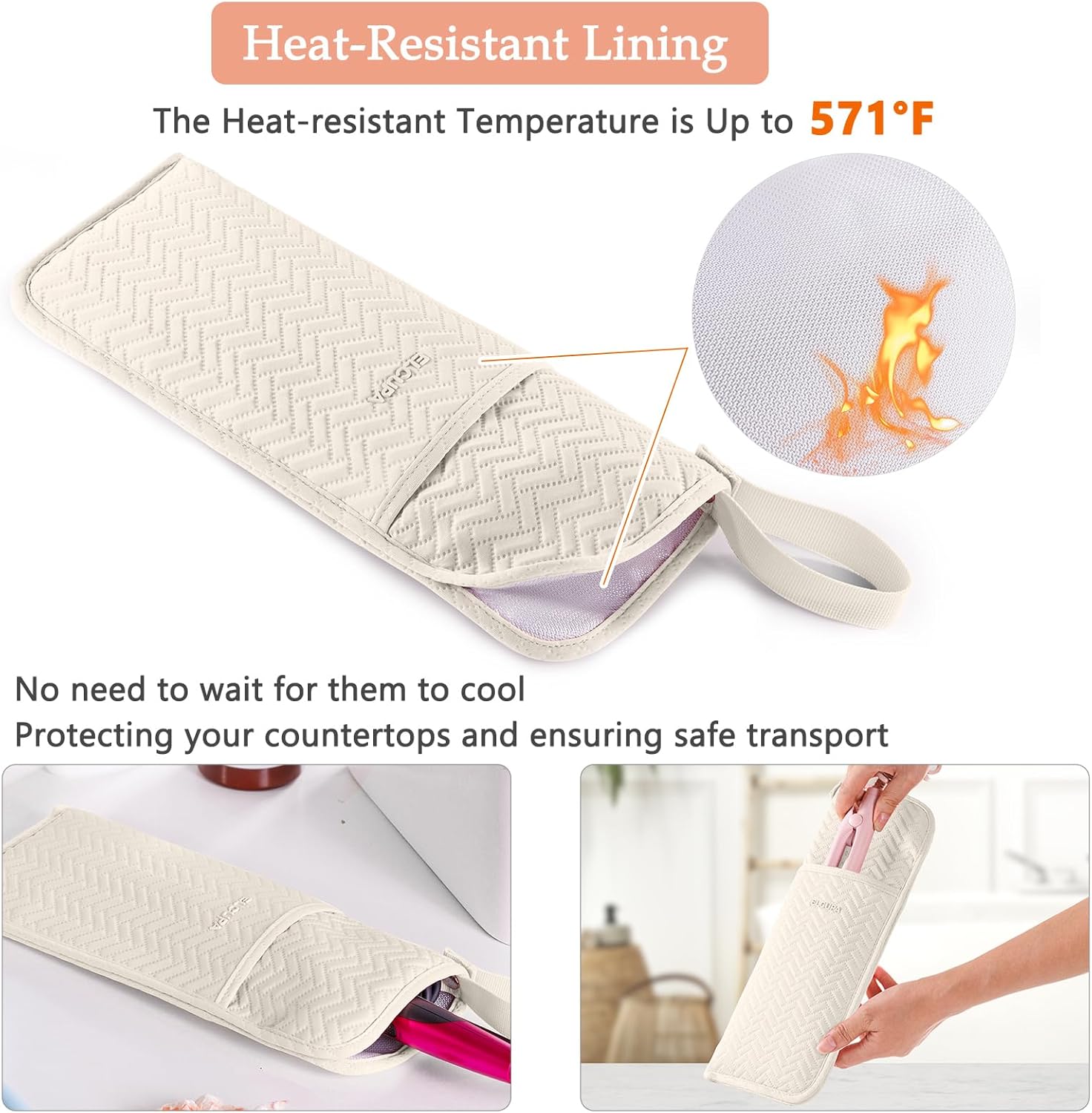 Outer layer of this curling iron cover bag is wear-resistant. Inner layer uses heat-resistant material, withstand temperatures up to 571°F. It allows you to safely pack away hot hair-styling tools immediately after use—no need to wait for them to cool
