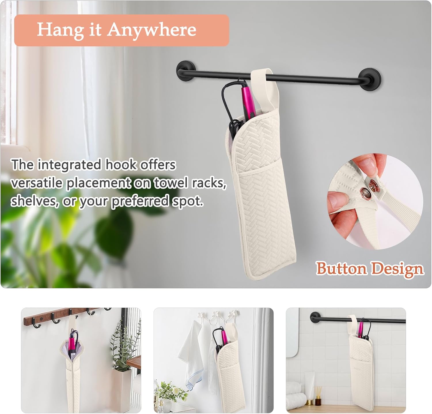 💼 Travel-Ready Design: Compact yet spacious (13.8″ × 5.5”), fits curling irons, flat irons, straighteners, and hair dryers. Lightweight and portable for trips, gym, or daily storage.