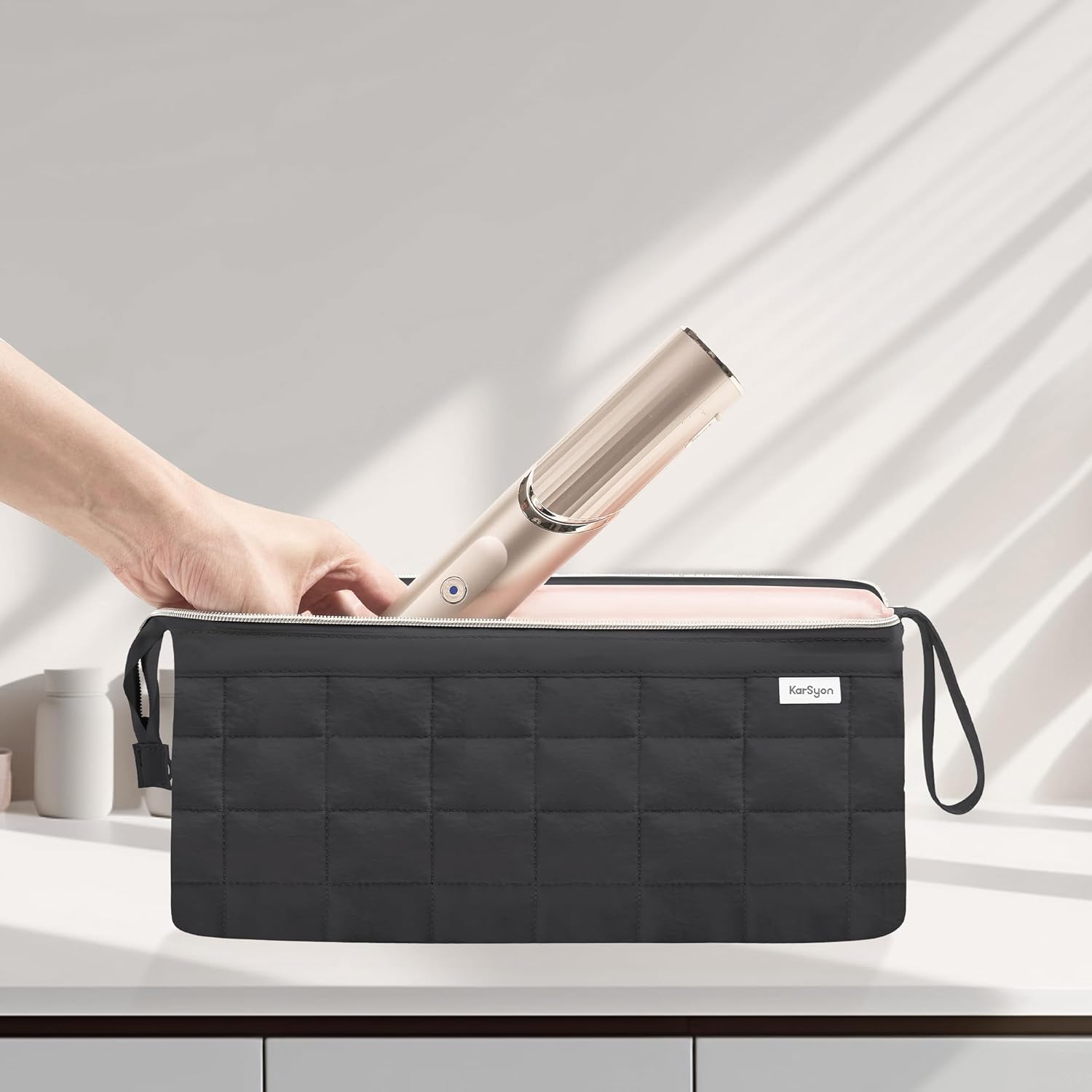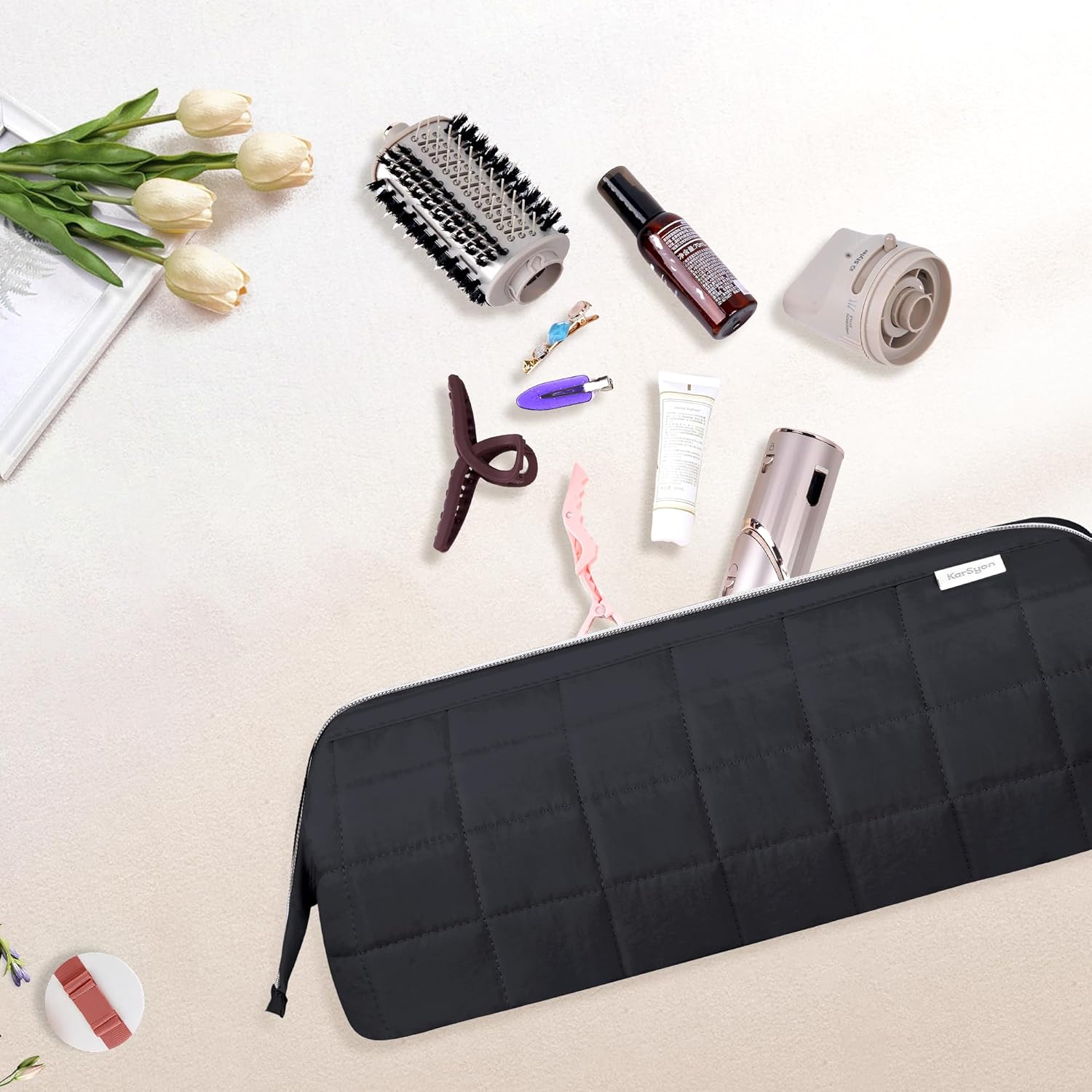 Practical Design:Enjoy quick access with the doctor bag-style wide opening. Two clear zippered internal pockets keep hair accessories and small items neatly stored. The well-padded soft interior, combined with a middle partition, protects your hair curler wands and dryer set (including Shark FlexStyle tools) from impacts, scratches, and damage.