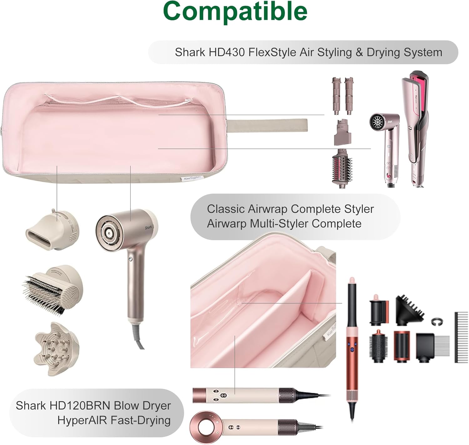 Design for Hairdressing Attachment: 13.7*5.9*5.9in/35*15*15cm,the Shark Flex Style Case anti-scratch, dustproof, waterproof and lightweight is perfectly compatible with Shark Flexstyle,Dyson Airwrap Style,and attachments,also suitable for Dyson,Shark Flexstyle Revlon and Supersonic Hair Dryer.